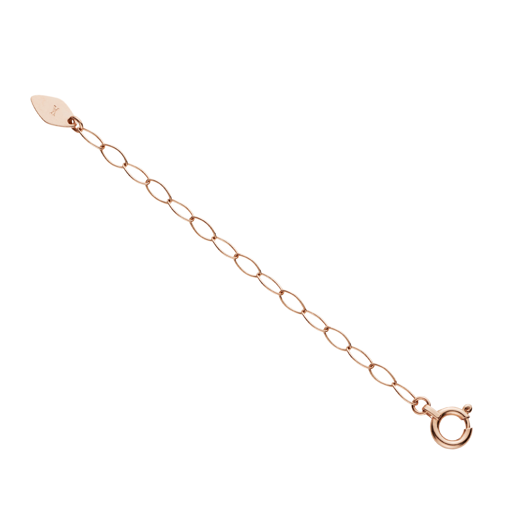 ネックレスの引き輪に取り付けるだけで長さをプラスできるピンクゴールドのアジャスターチェーン。