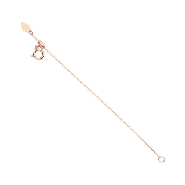 ネックレスの引き輪に取り付けるだけで長さをプラスできるピンクゴールドのスライド式のアジャスターチェーン。