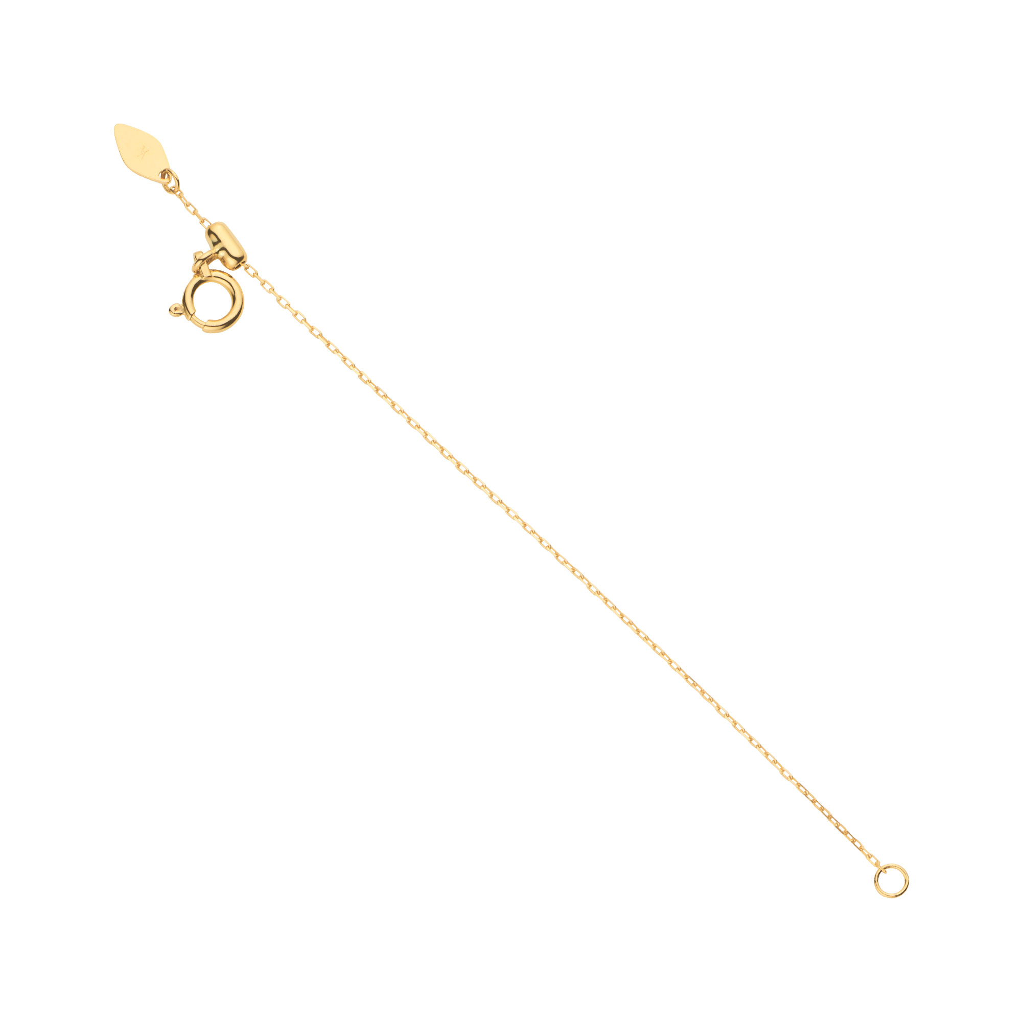 ネックレスの引き輪に取り付けるだけで長さをプラスできるイエローゴールドのスライド式のアジャスターチェーン。