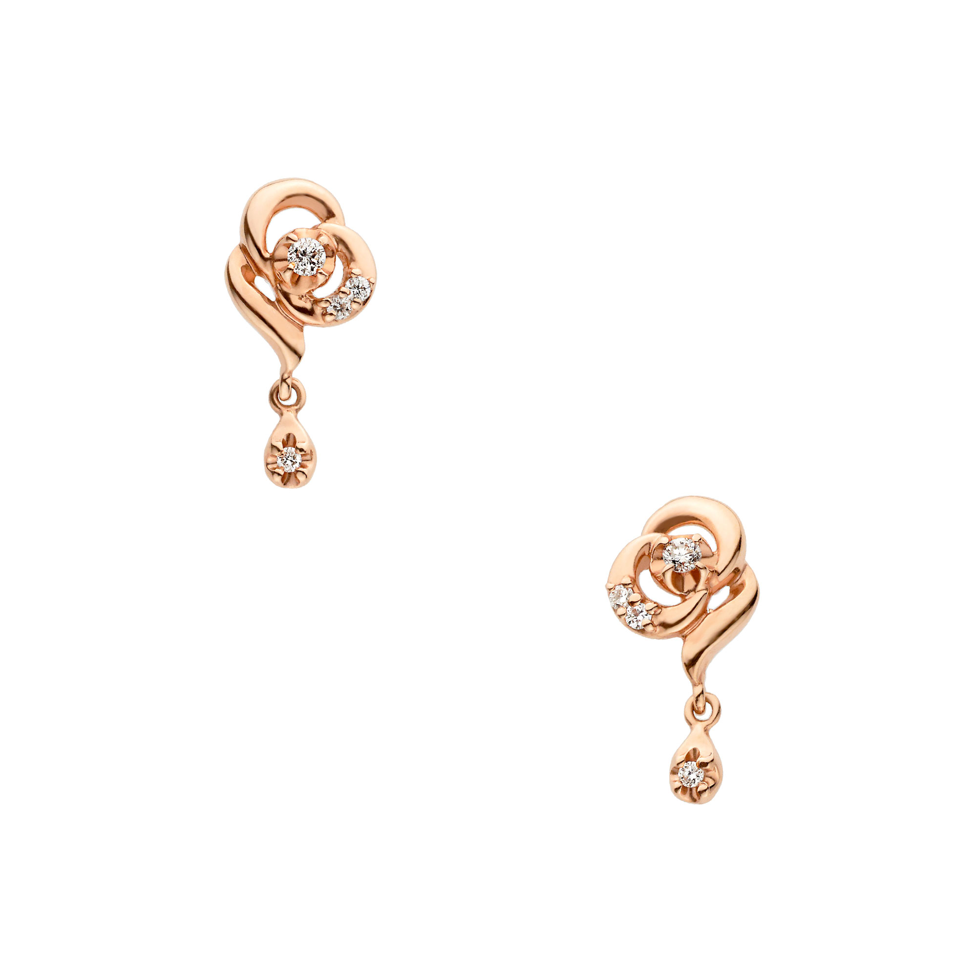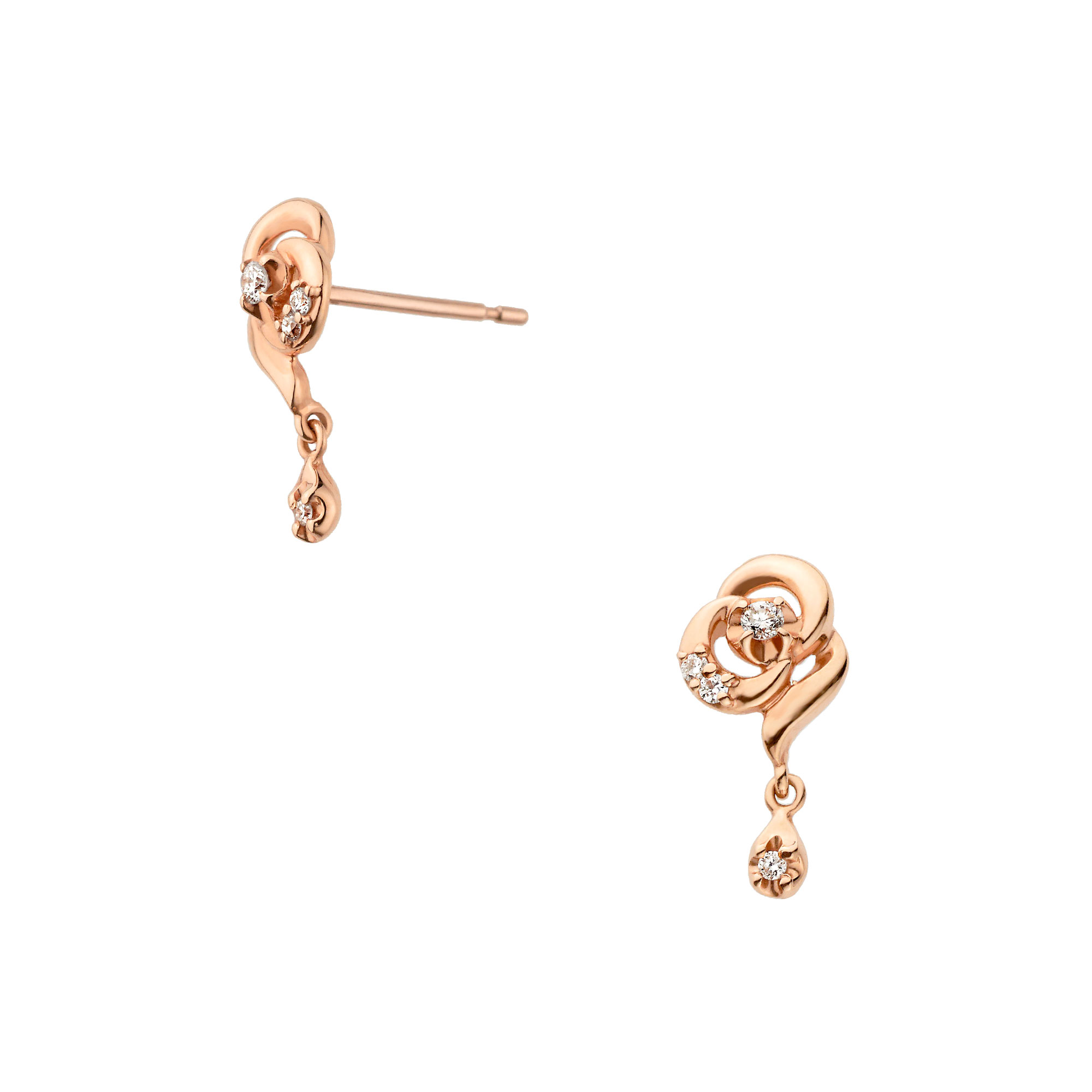 ふんわりとしたバラの花にダイヤモンドの雫が揺れる、フェミニンでエレガントな雰囲気。