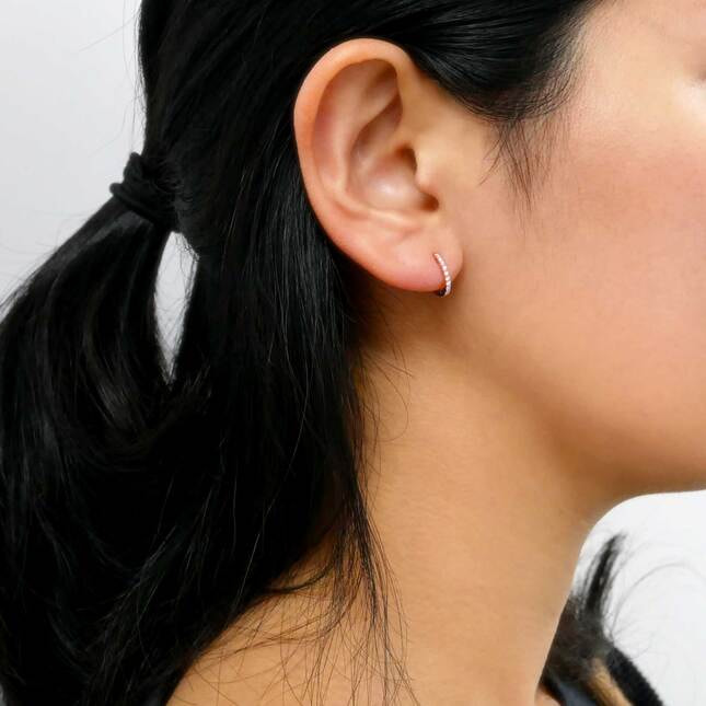 ピンクゴールドのフープにダイヤモンドをあしらったベーシックなピアス。
