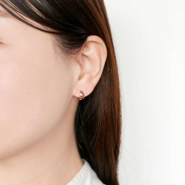 ピンクゴールドのツヤ感が美しいプチサイズのピアス。