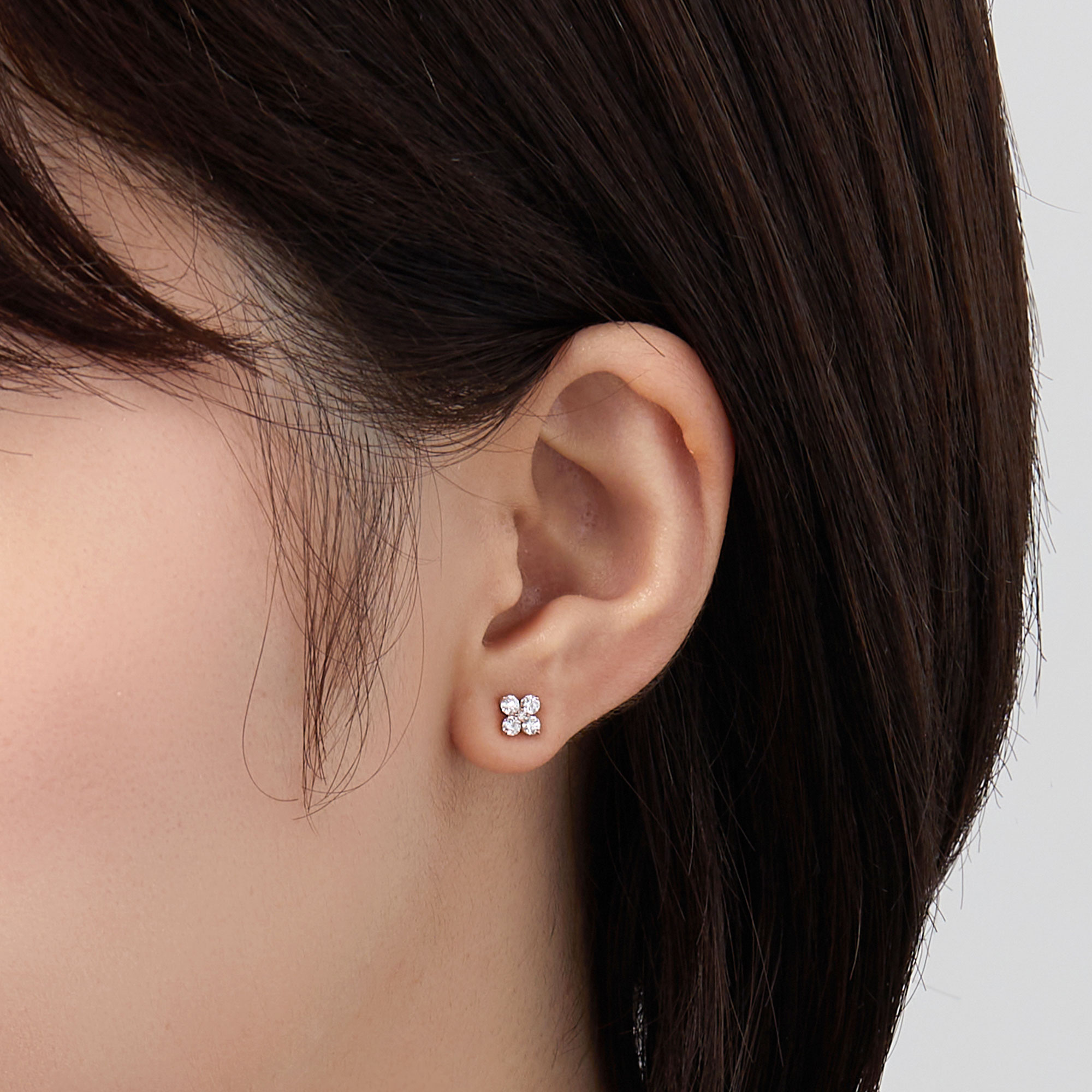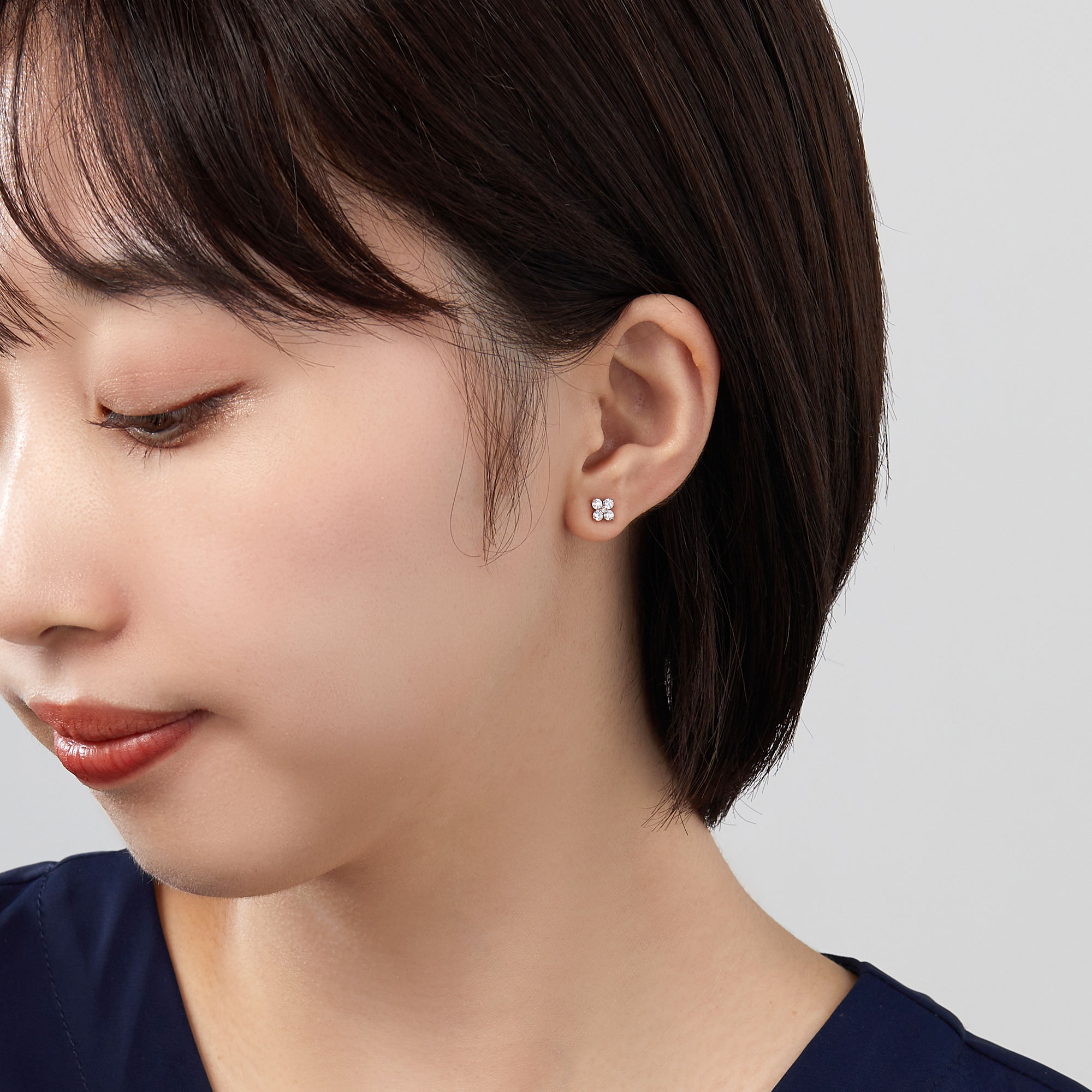 ダイヤモンドの輝きで花びらの瑞々しさを表現した、優しくフェミニンな表情のピアスです。