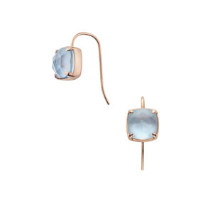 スカイブルートパーズはふっくらとしたフォルムの上にカットされ、エレガントな印象に。