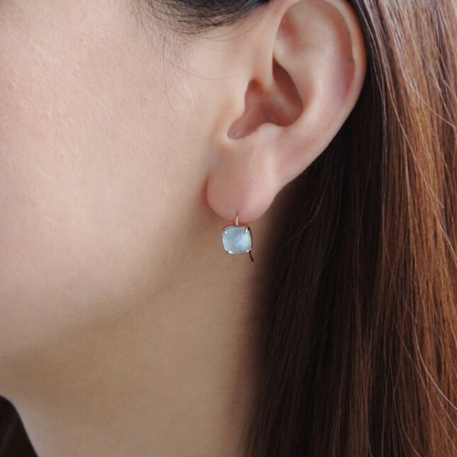 シェルの上にスカイブルートパースを重ね、明るいブルーの奥にやわらかさのあるシェルの輝きが透けて見えるピアス。