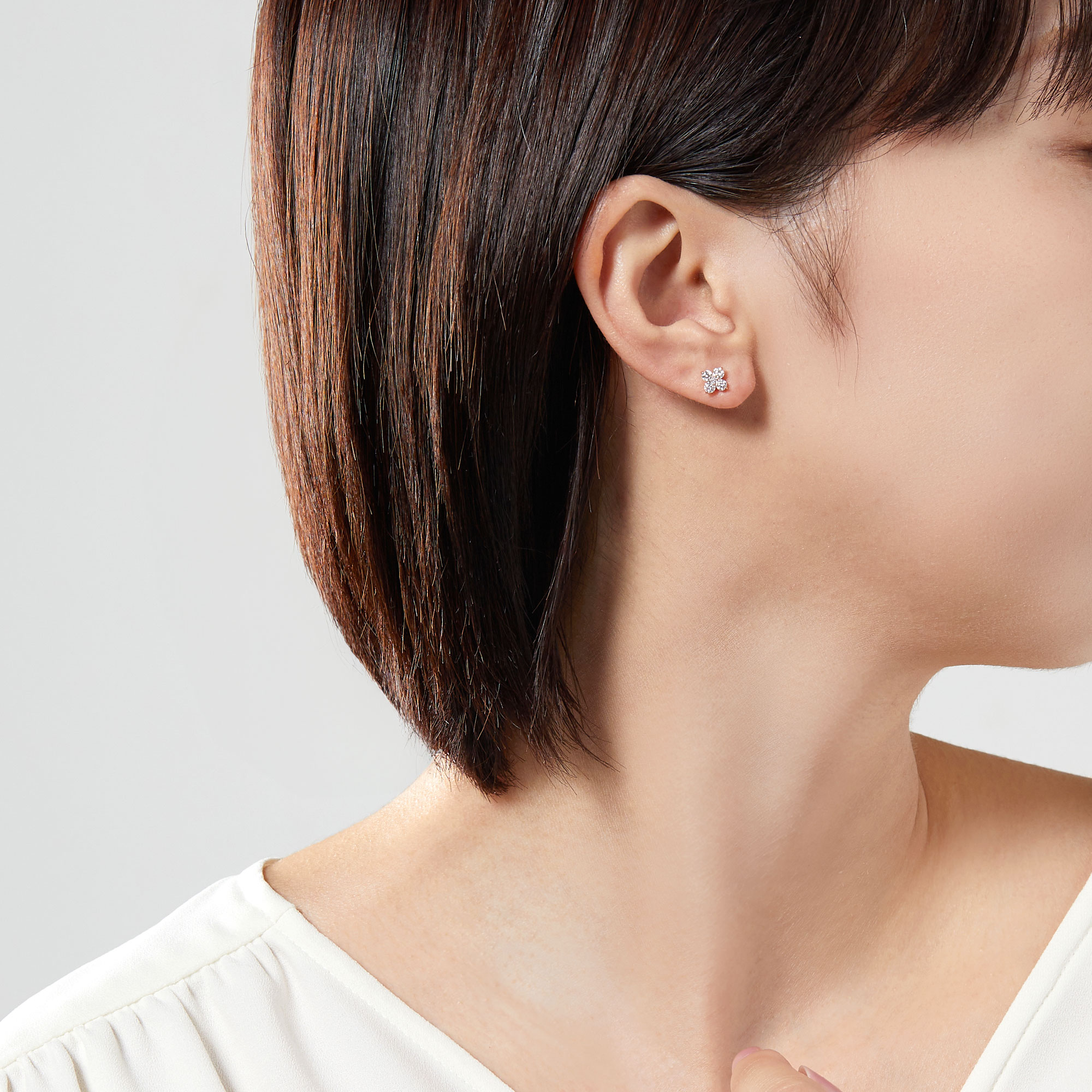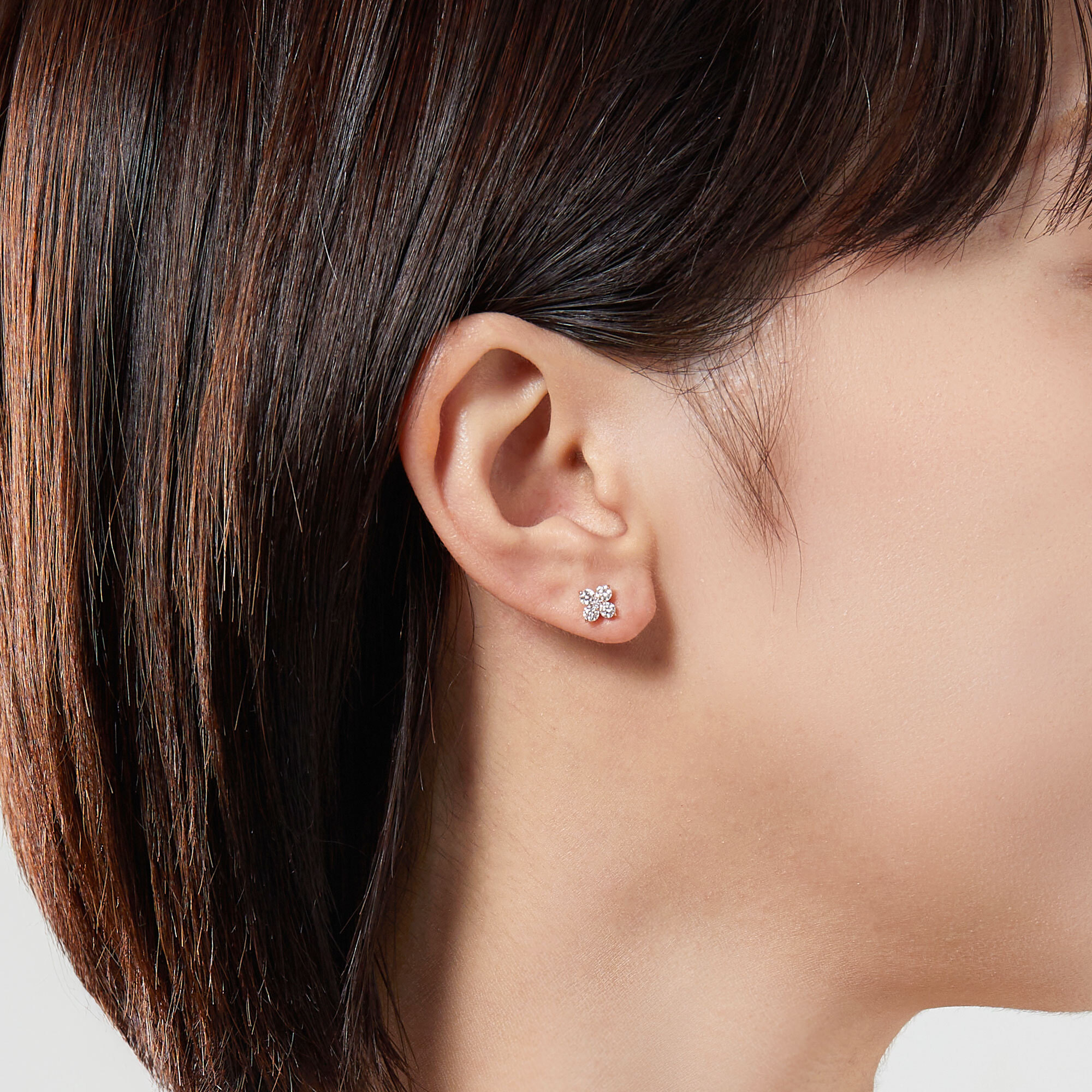 ダイヤモンドの輝きで花びらの瑞々しさを表現した、優しくフェミニンな表情のピアスです。