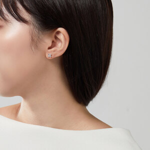 ダイヤモンドの輝きで花びらの瑞々しさを表現した、優しくフェミニンな表情のピアスです。