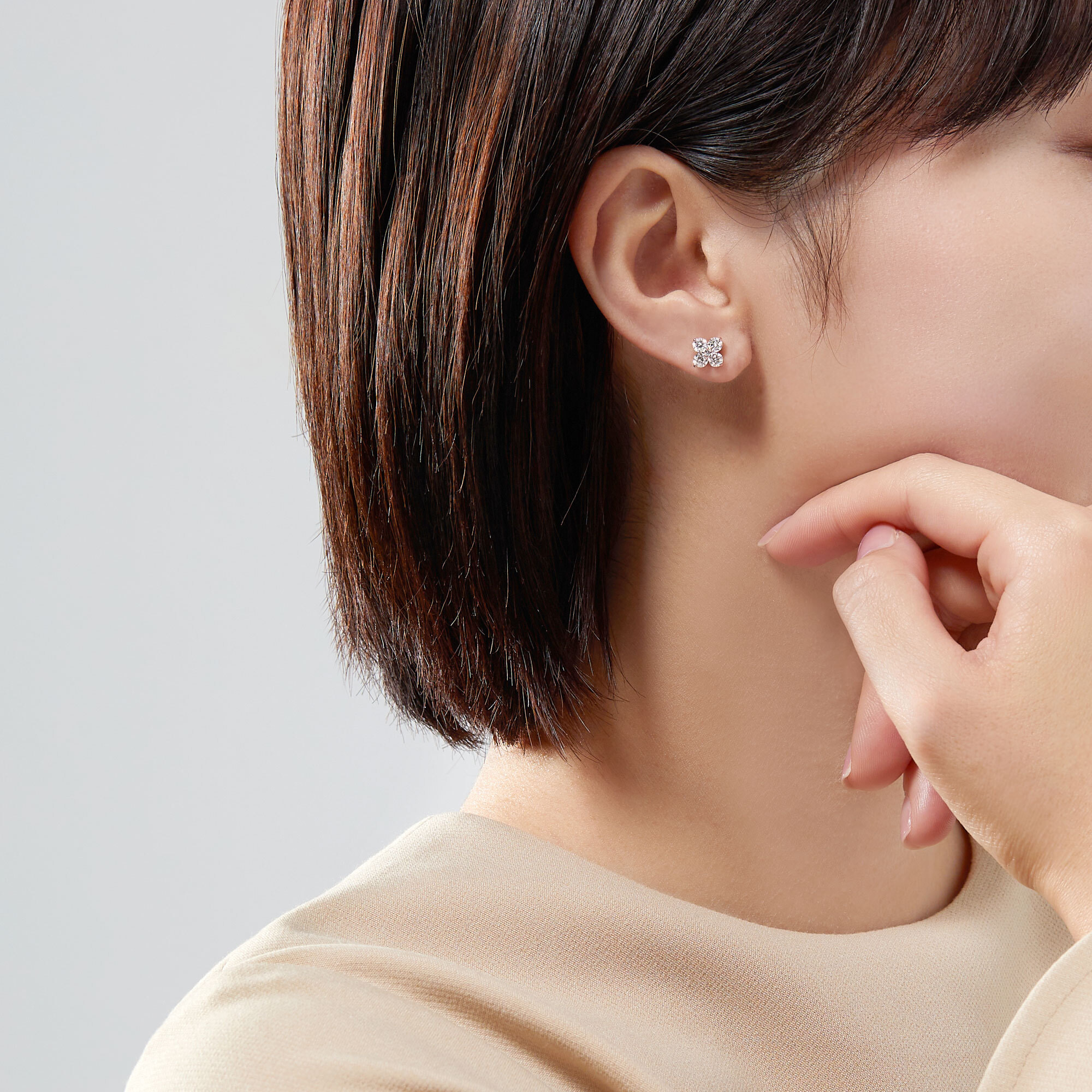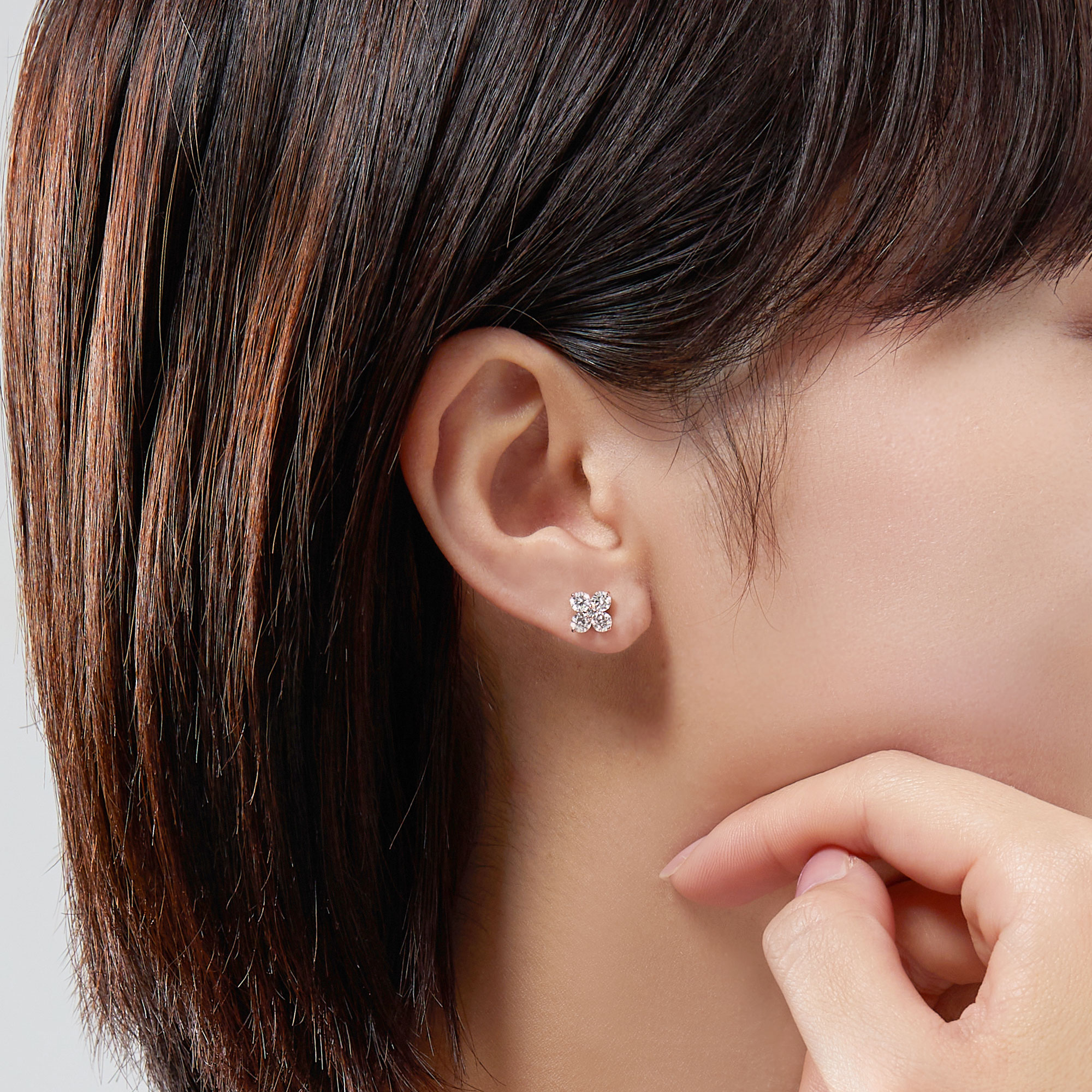 ダイヤモンドの輝きで花びらの瑞々しさを表現した、優しくフェミニンな表情のピアスです。