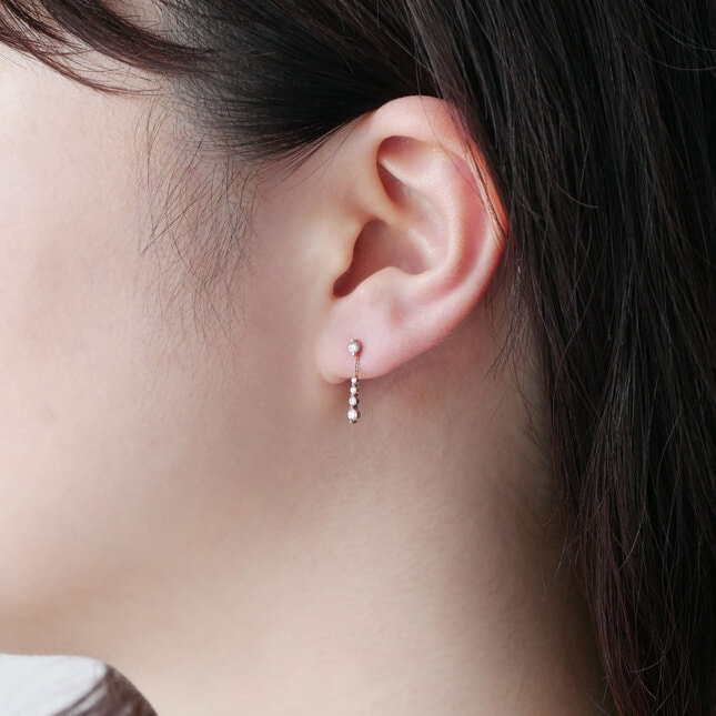 ダイヤモンドの粒感を生かした美しいグラデーションと、揺れ感が魅力のピアス。