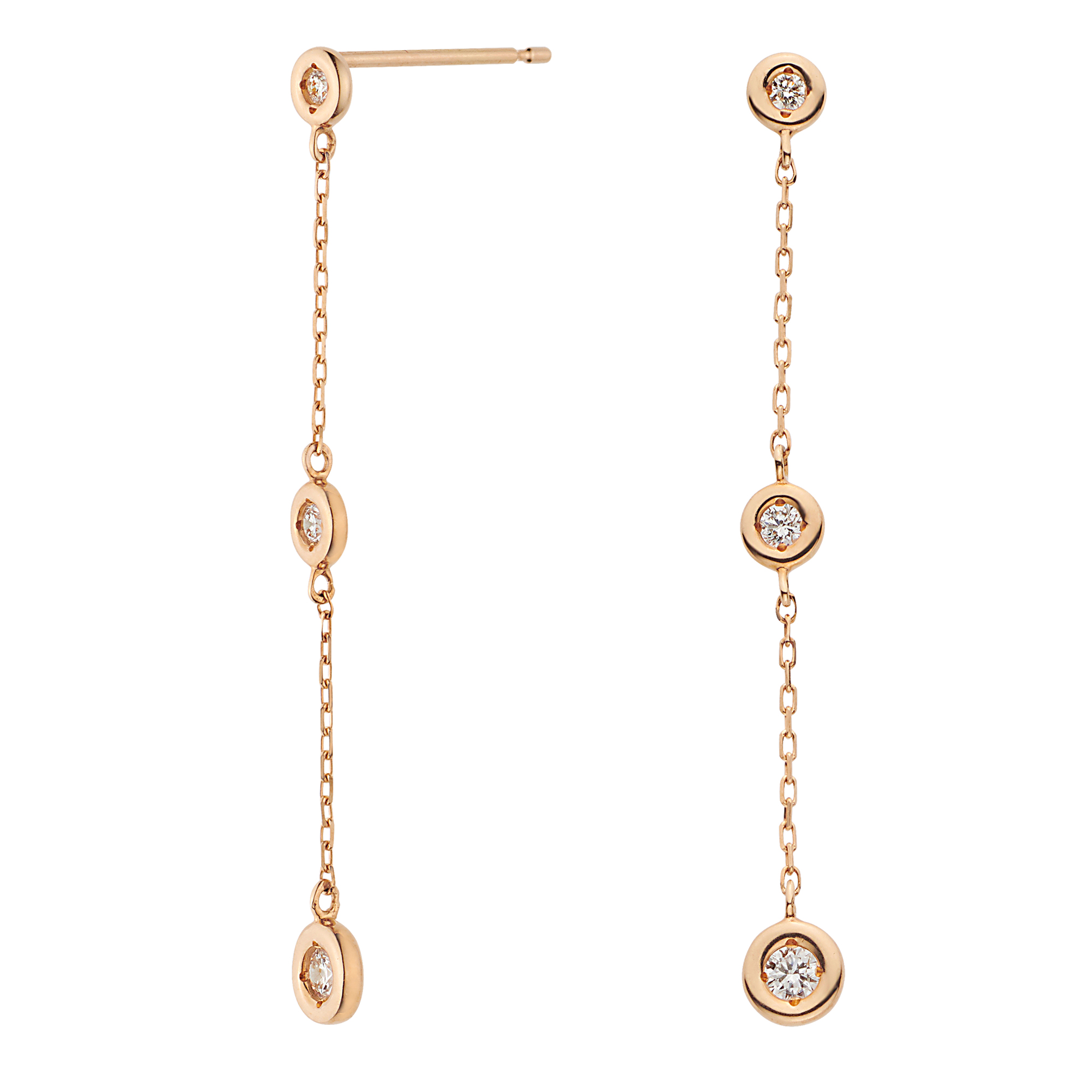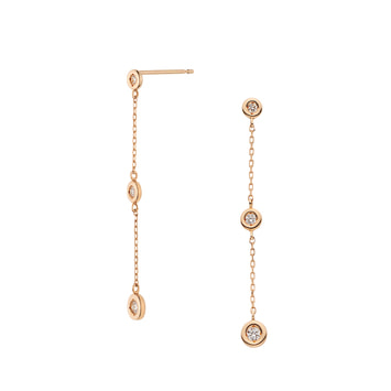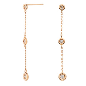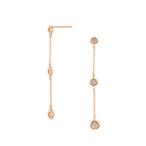 ゴールドのチェーンにダイヤモンドをあしらった、ステーションタイプのピアス。