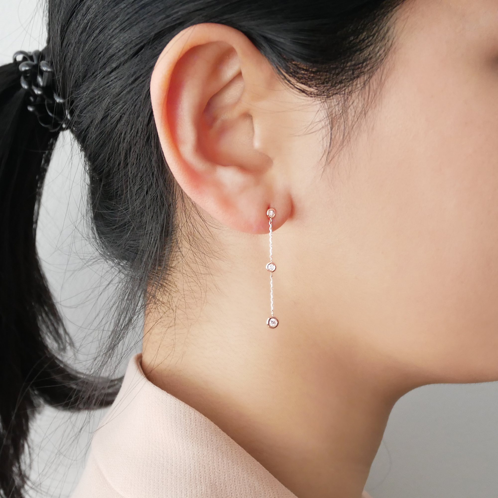 程よく長めのチェーンがしなやかな揺れ感を生み出し、横顔を印象的に見せてくれます。