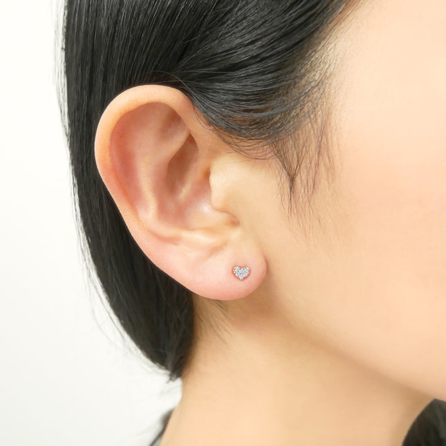 敷き詰められたダイヤモンドの輝きが美しく、愛らしいフォルムのハートモチーフピアス。