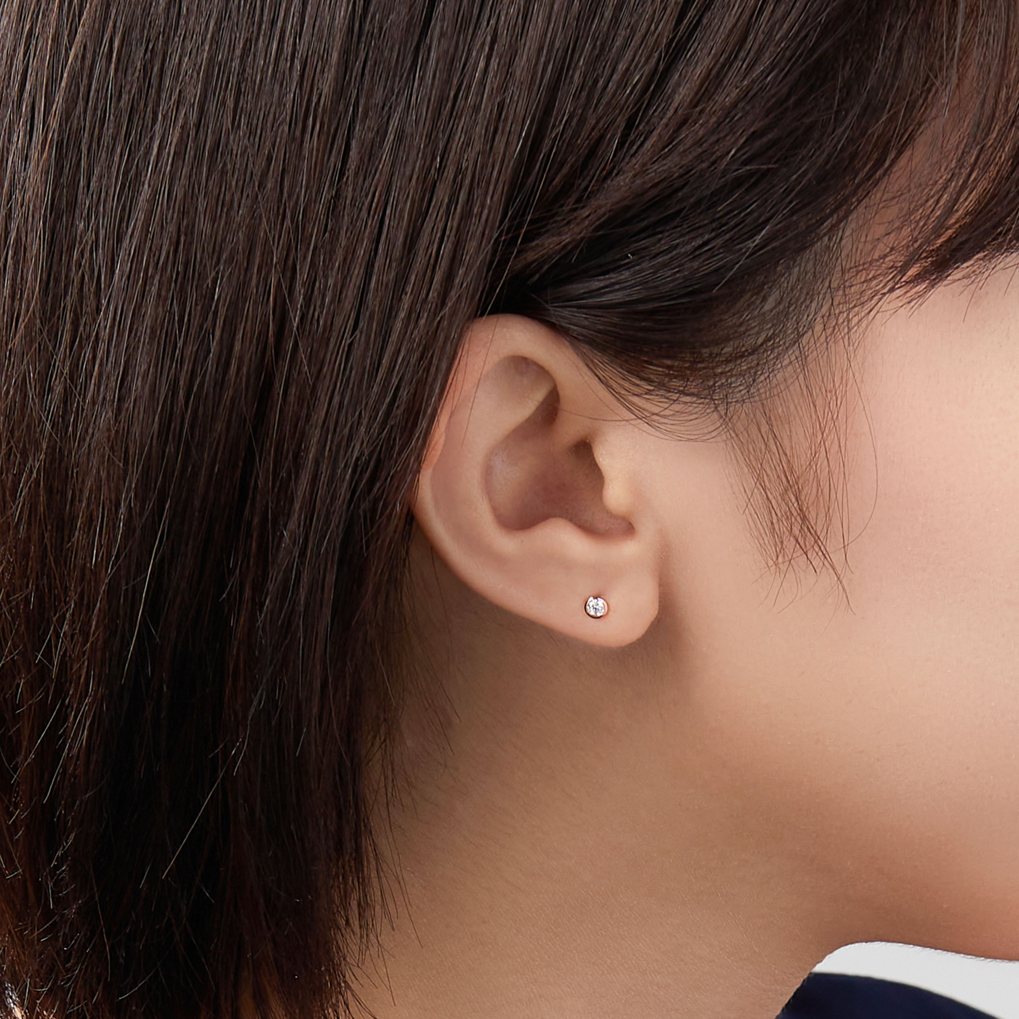ダイヤモンドの輝きを最大限に引き立てるよう、シンプルを極めたセルクルピアス。