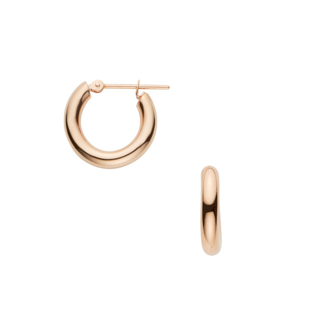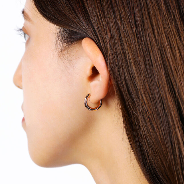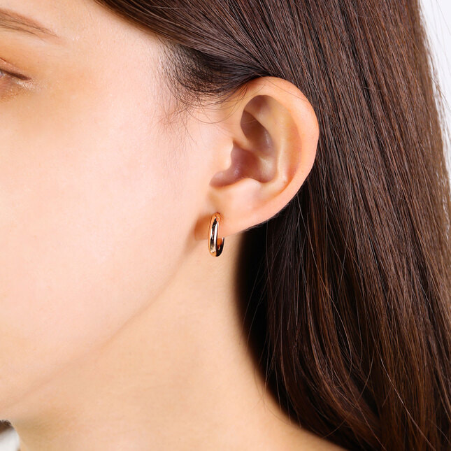 ピンクゴールドの美しい光沢が楽しめるフープタイプのピアス。