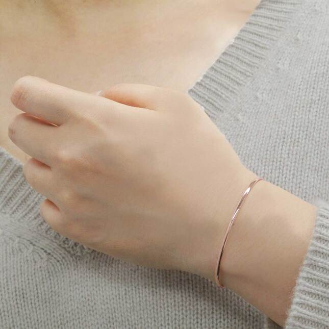 つや感のある光沢を放つピンクゴールドがクリーンな印象を与えつつも、細みで繊細なラインが手元を女性らしく演出してくれます。