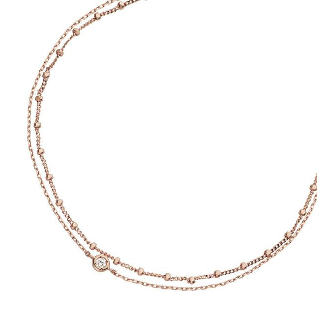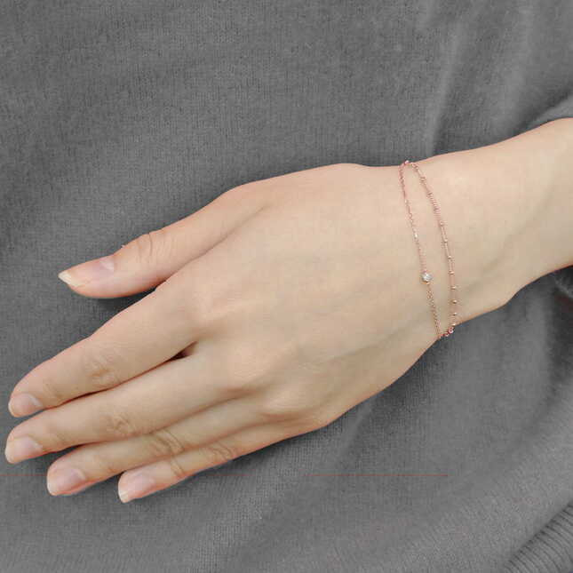 キラキラとしたパーツがリズミカルに並んだチェーンと、ダイヤモンドの煌きが美しく、手元に豊かな表情を生み出します。