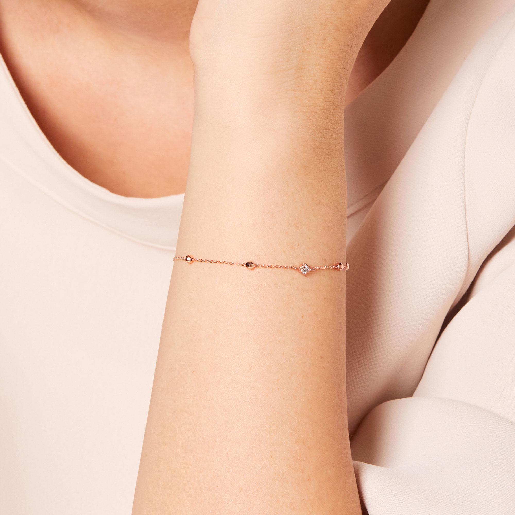 煌めくダイヤモンドとミラーカットパーツが華やかなブレスレット。