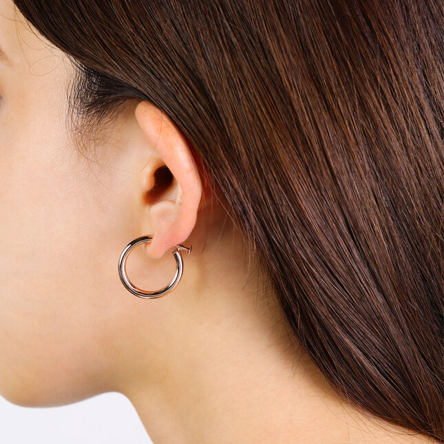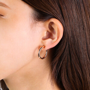 ピンクゴールドの美しい光沢が楽しめるフープタイプのイヤリング。