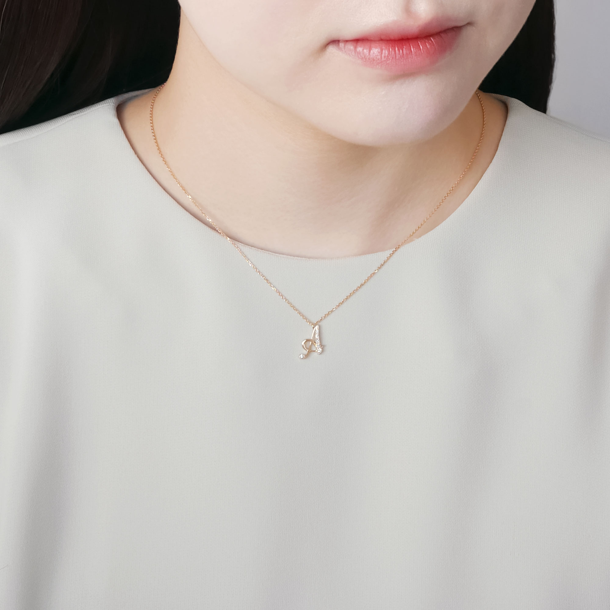 羽ペンのレタリングのような、華やかでエレガントな印象のイニシャルネックレス。