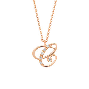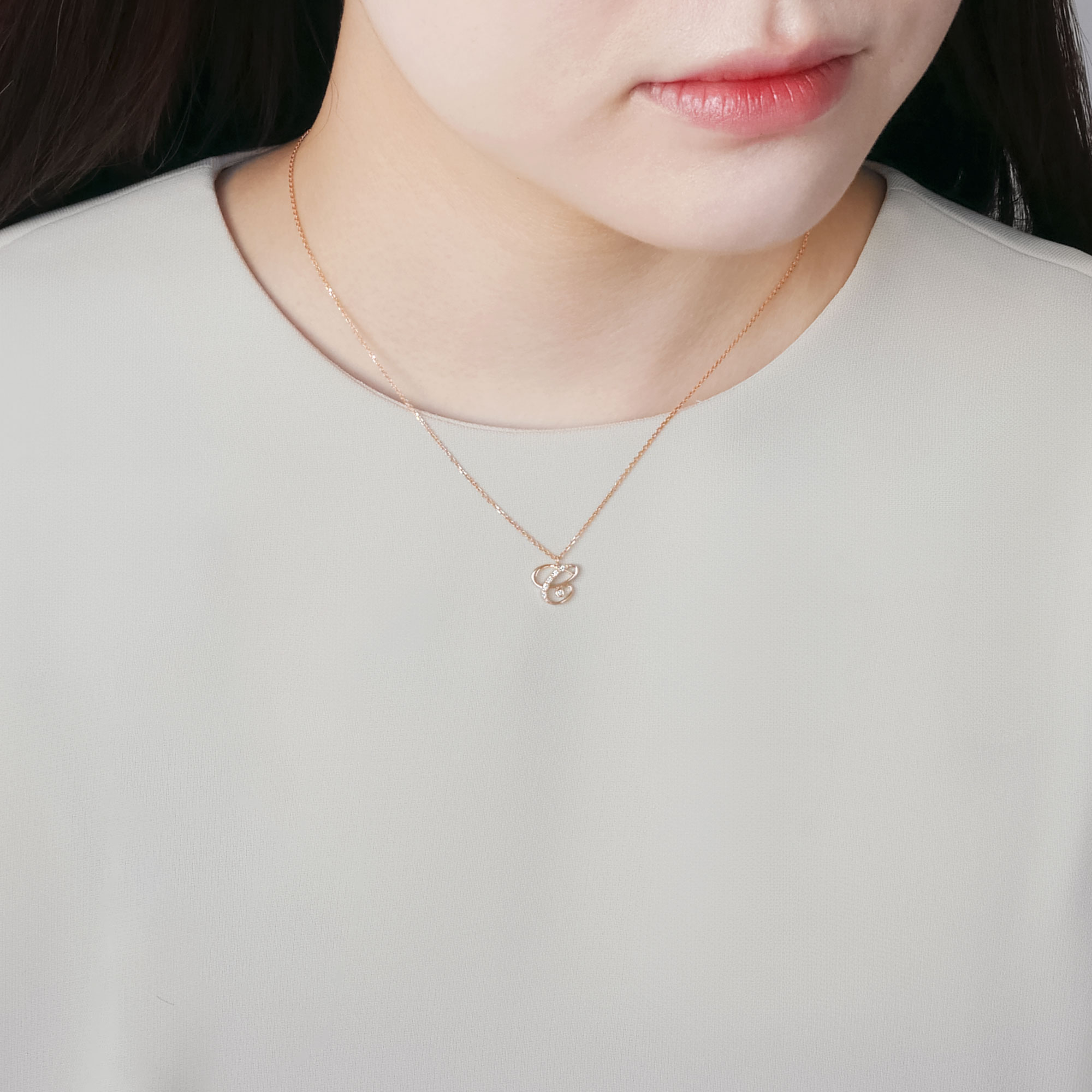 羽ペンのレタリングのような、華やかでエレガントな印象のイニシャルネックレス。