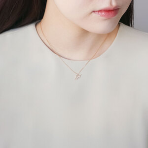 羽ペンのレタリングのような、華やかでエレガントな印象のイニシャルネックレス。