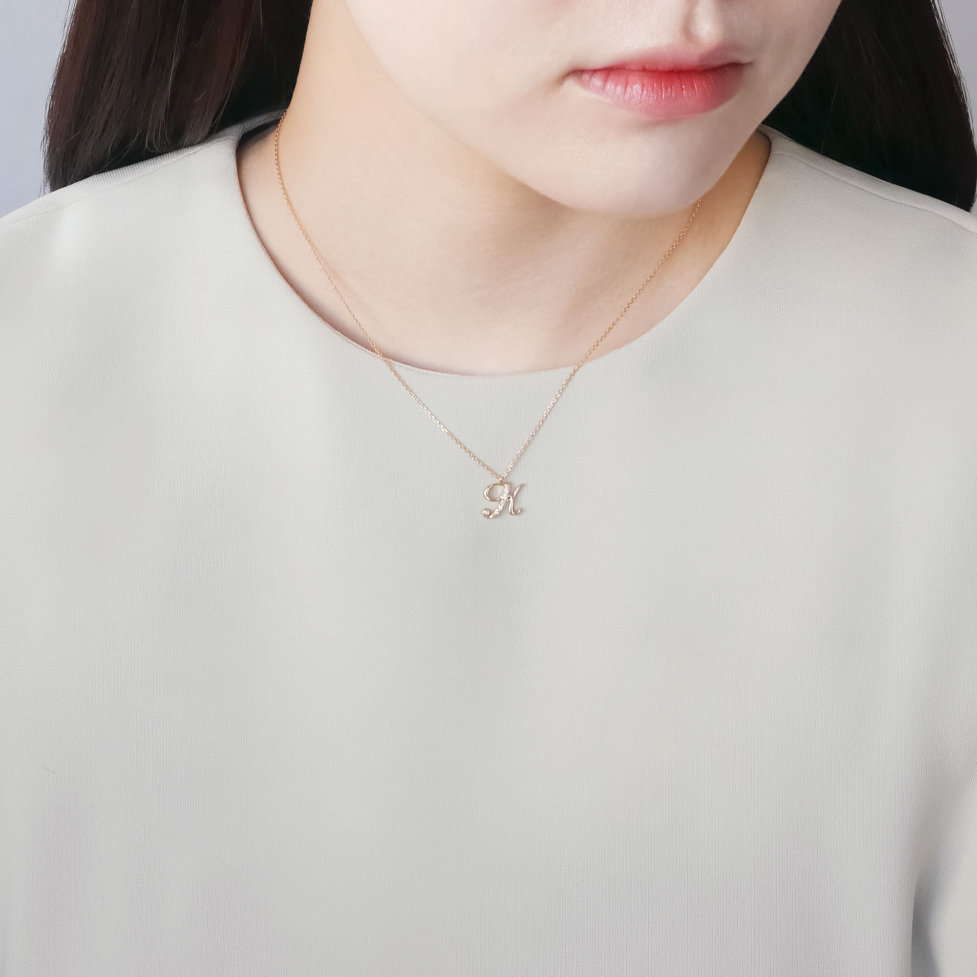羽ペンのレタリングのような、華やかでエレガントな印象のイニシャルネックレス。