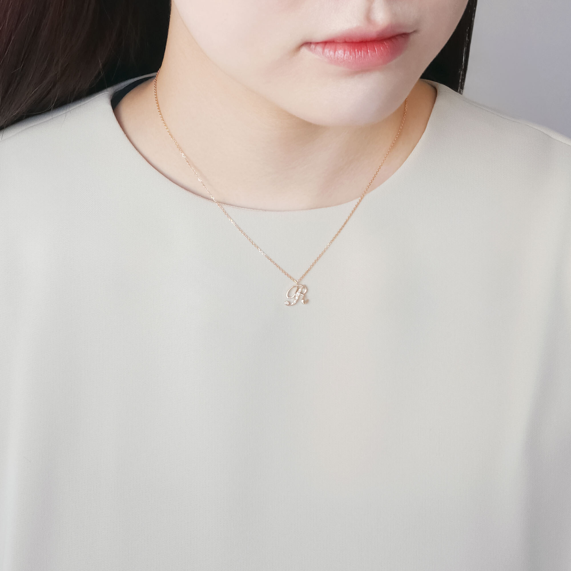 羽ペンのレタリングのような、華やかでエレガントな印象のイニシャルネックレス。