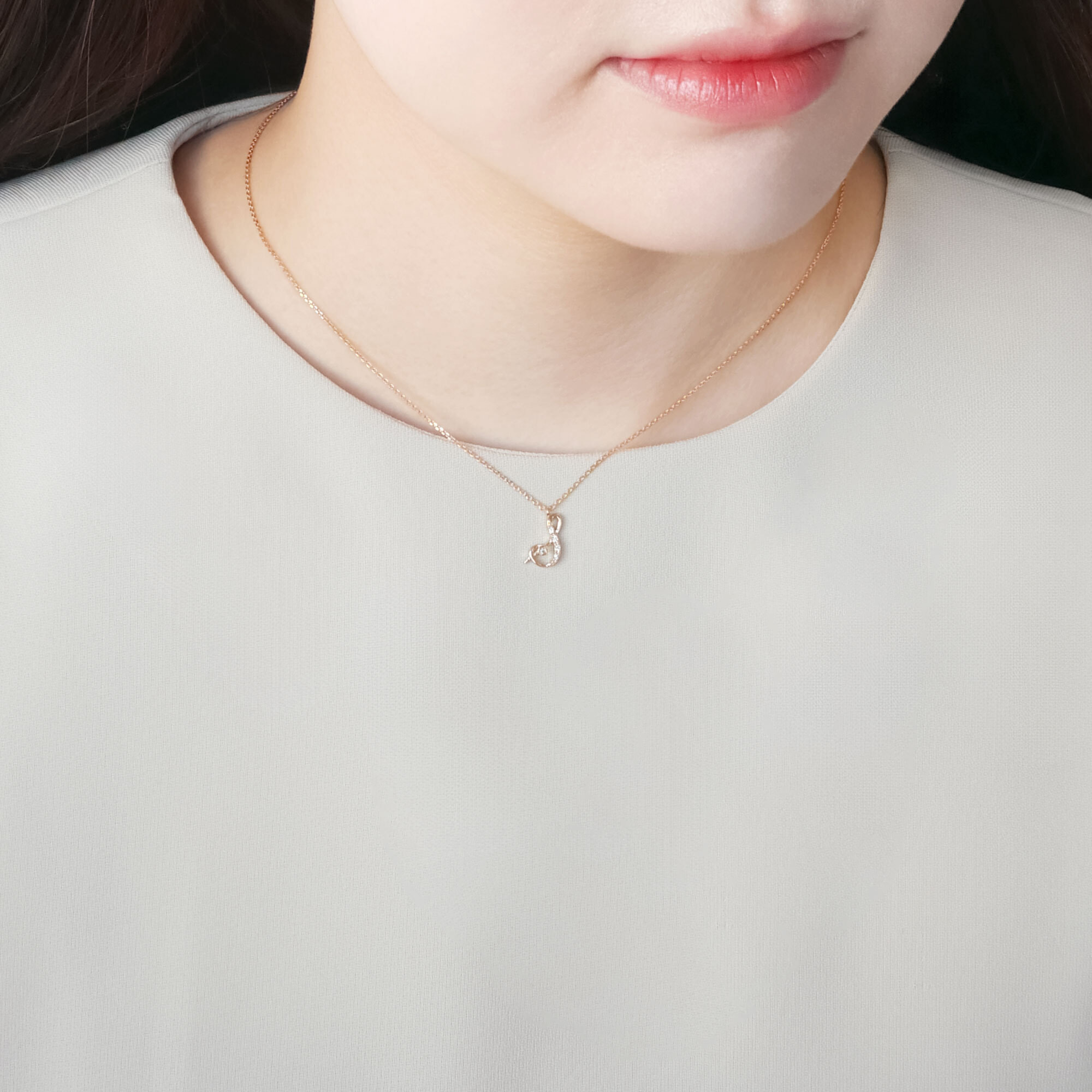 羽ペンのレタリングのような、華やかでエレガントな印象のイニシャルネックレス。