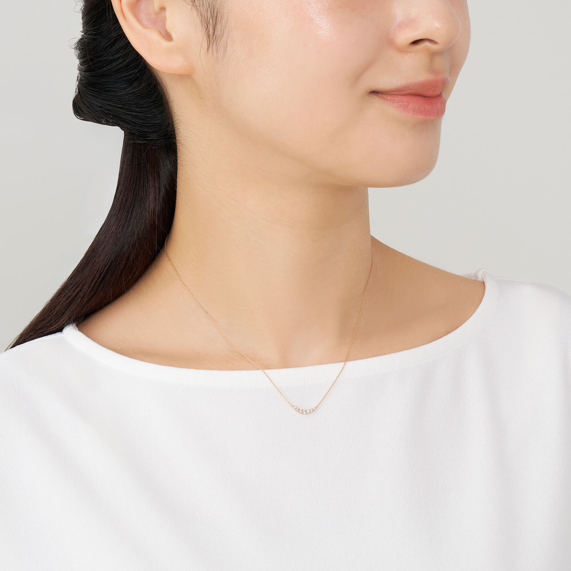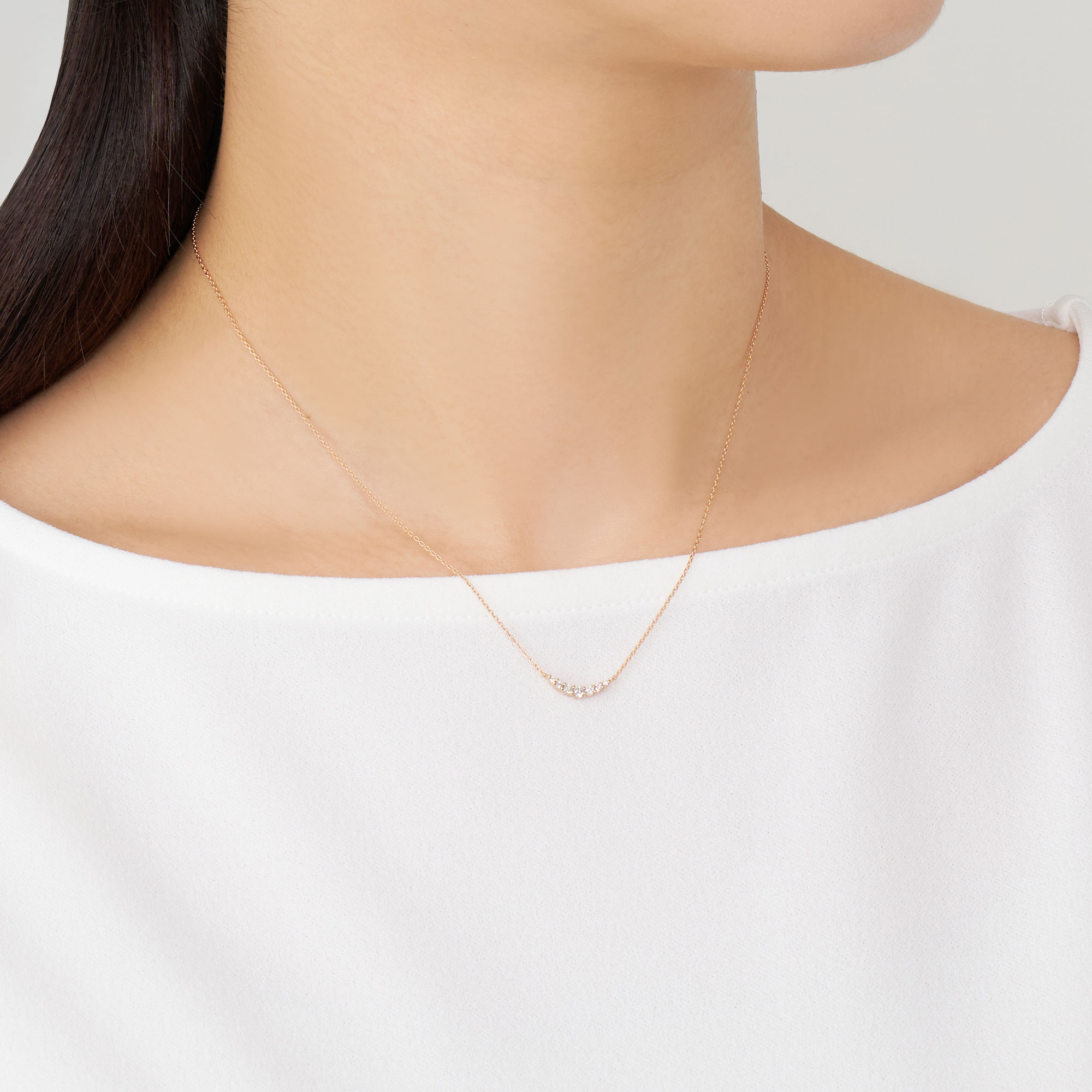 緩やかなU字を描くように、ダイヤモンドのナチュラルな輝きが際立つ人気のエレガントなネックレス。