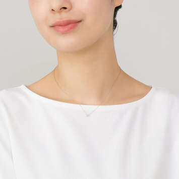 モチーフのフォルムを引き立てる両吊りのアズキチェーンで、ダイヤモンドの輝きがぐっと際立つ、満足度の高いネックレスです。