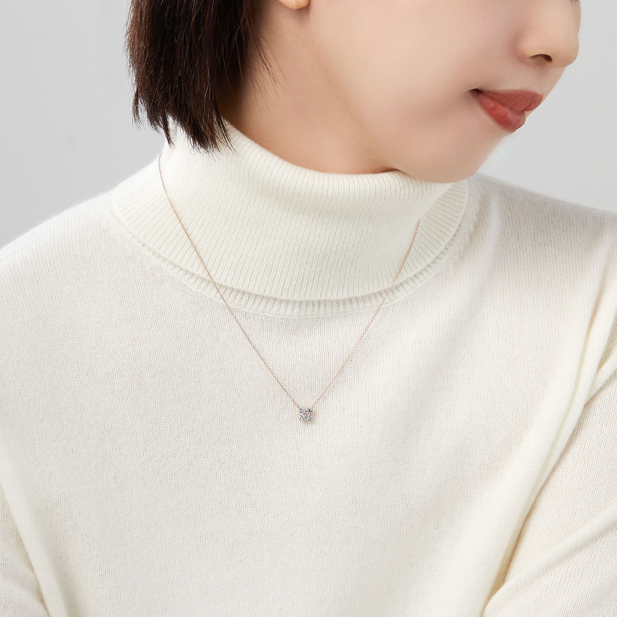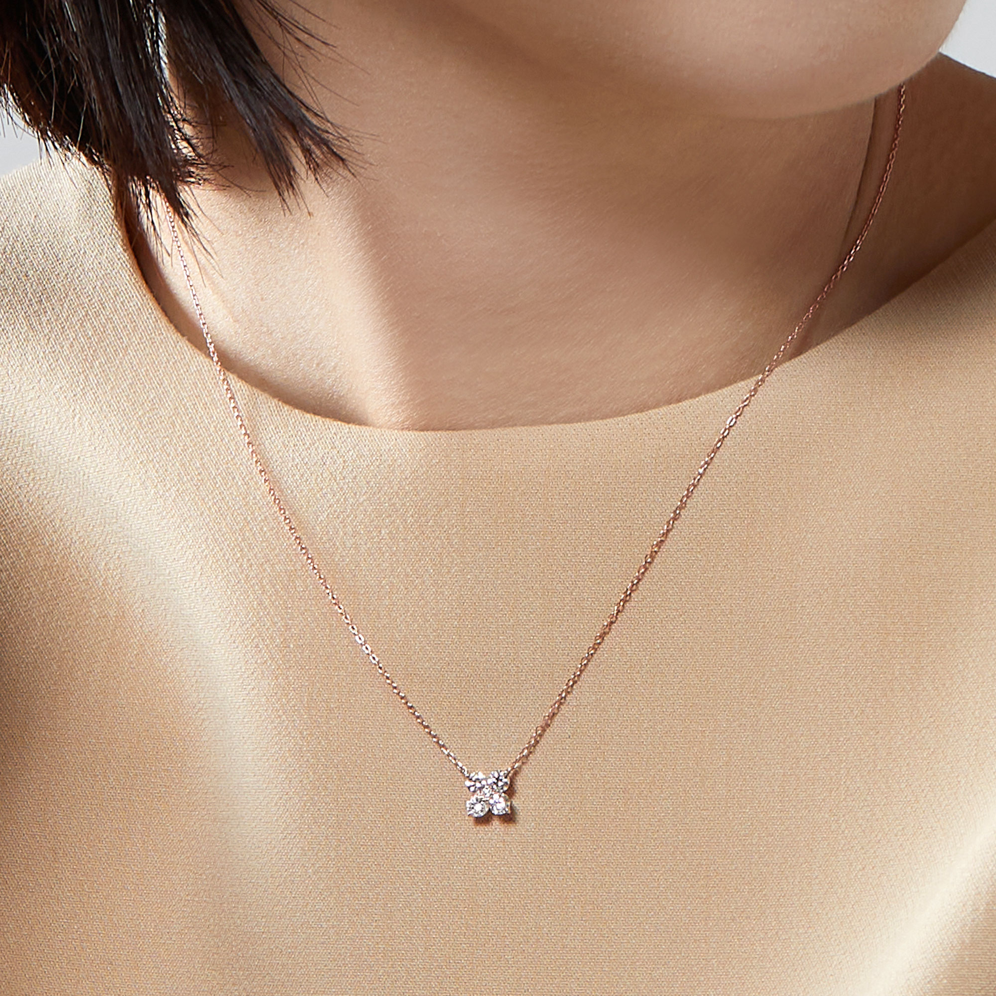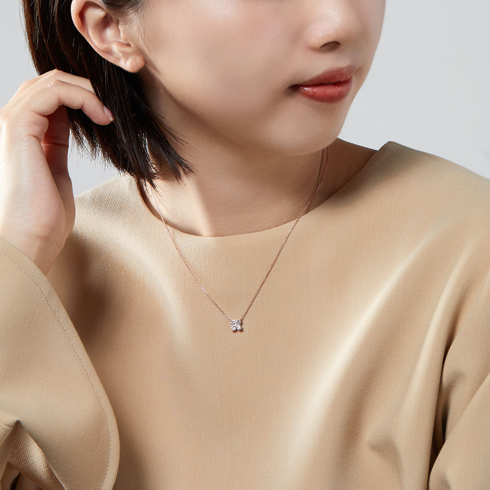 モチーフのフォルムを引き立てる両吊りのアズキチェーンで、ダイヤモンドの輝きがぐっと際立つ、満足度の高いネックレス。