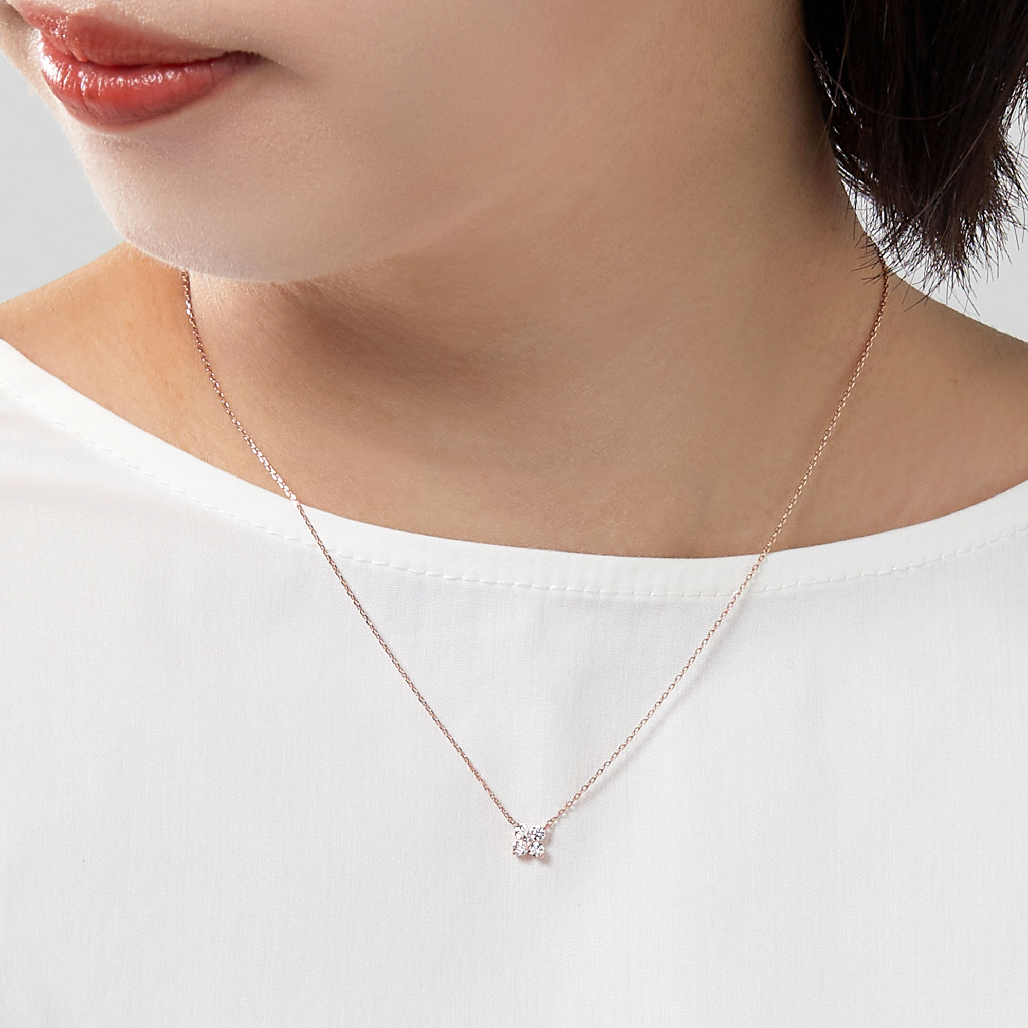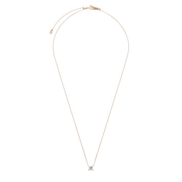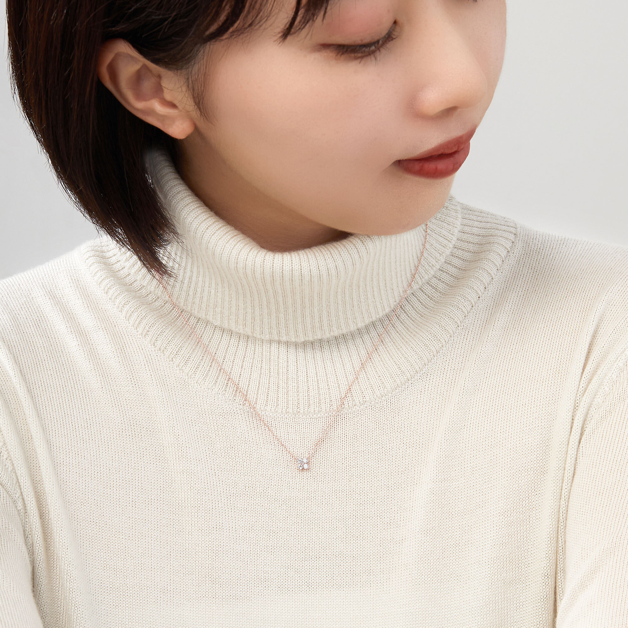 モチーフのフォルムを引き立てる両吊りのアズキチェーンで、ダイヤモンドの輝きがぐっと際立つ、満足度の高いネックレス。