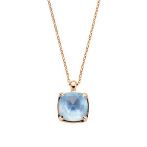 スカイブルートパーズはふっくらとしたフォルムの上にカットされ、エレガントな印象に。