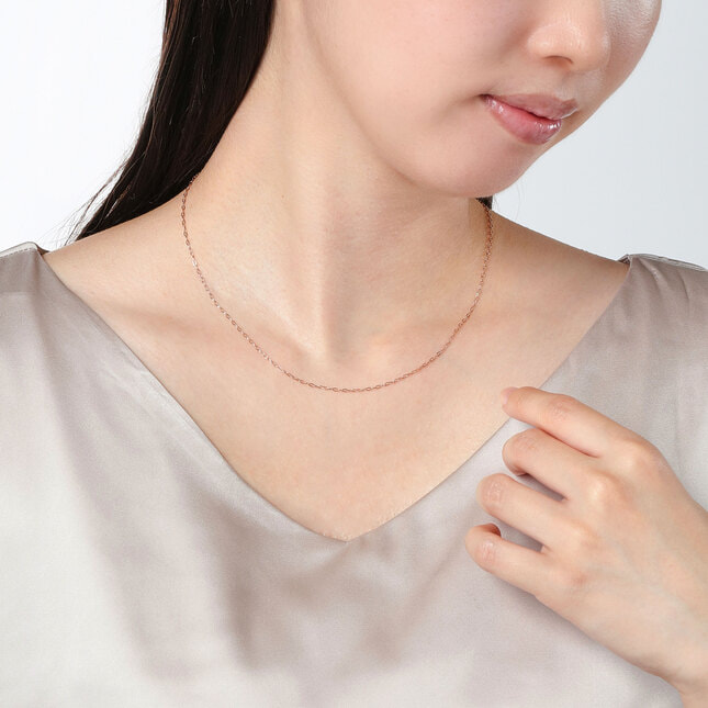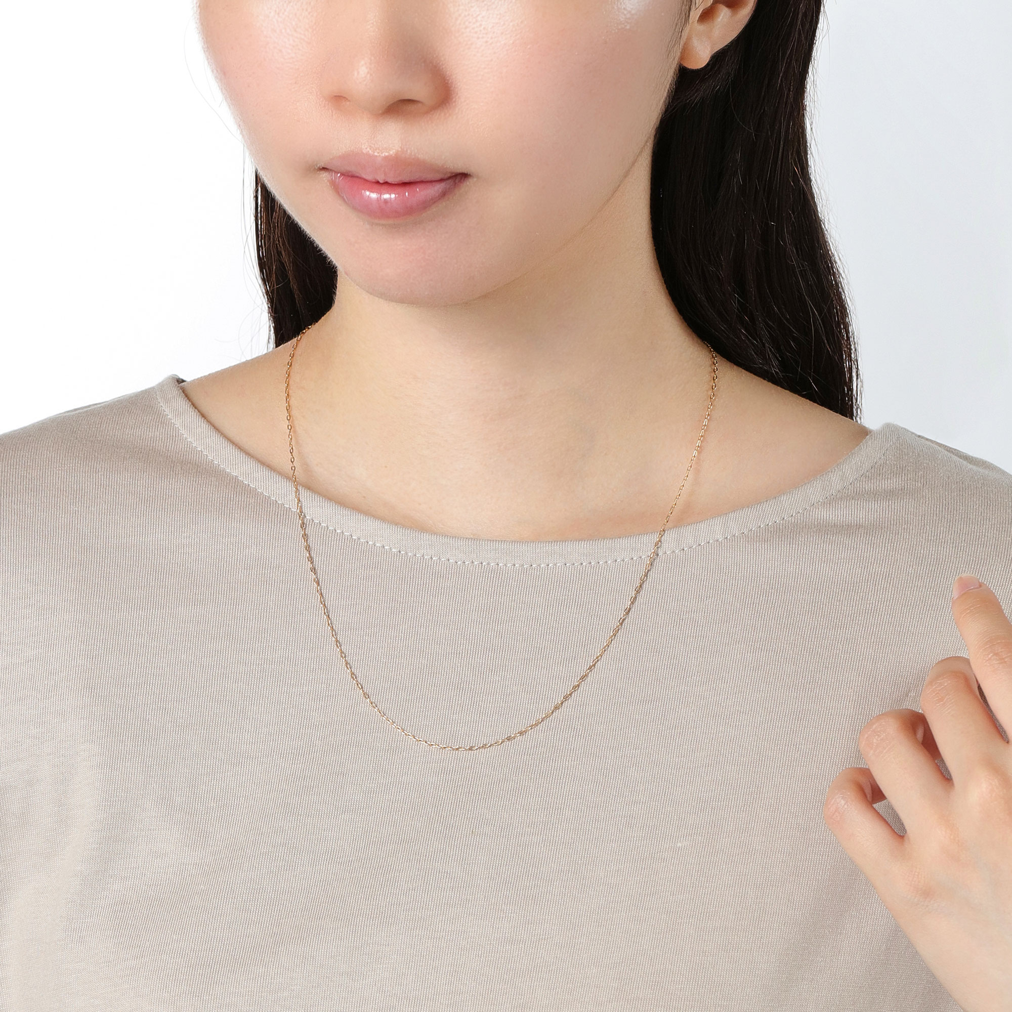 50cmは程よい長さでカジュアルになりすぎることなく、大人っぽい印象に仕立てます。