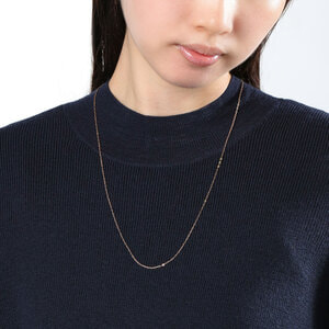 60cmは大きめのペンダントトップを下げてもゆったりとしたラグジュアリーさを感じさせる長さで、厚手の衣類の上でもしっかりと長さを表現できます。