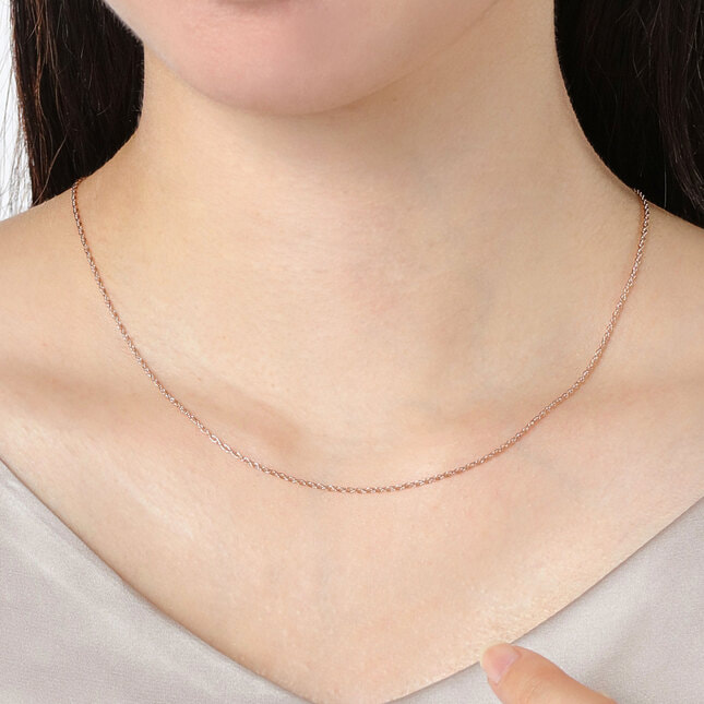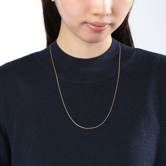 60cmは大きめのペンダントトップを下げてもゆったりとしたラグジュアリーさを感じさせる長さで、厚手の衣類の上でもしっかりと長さを表現できます。