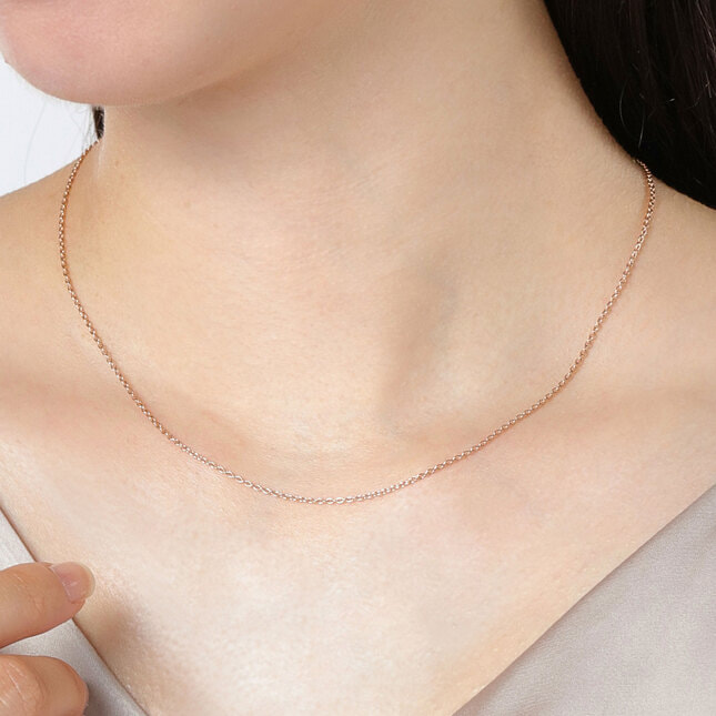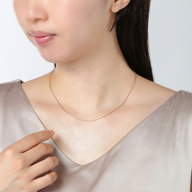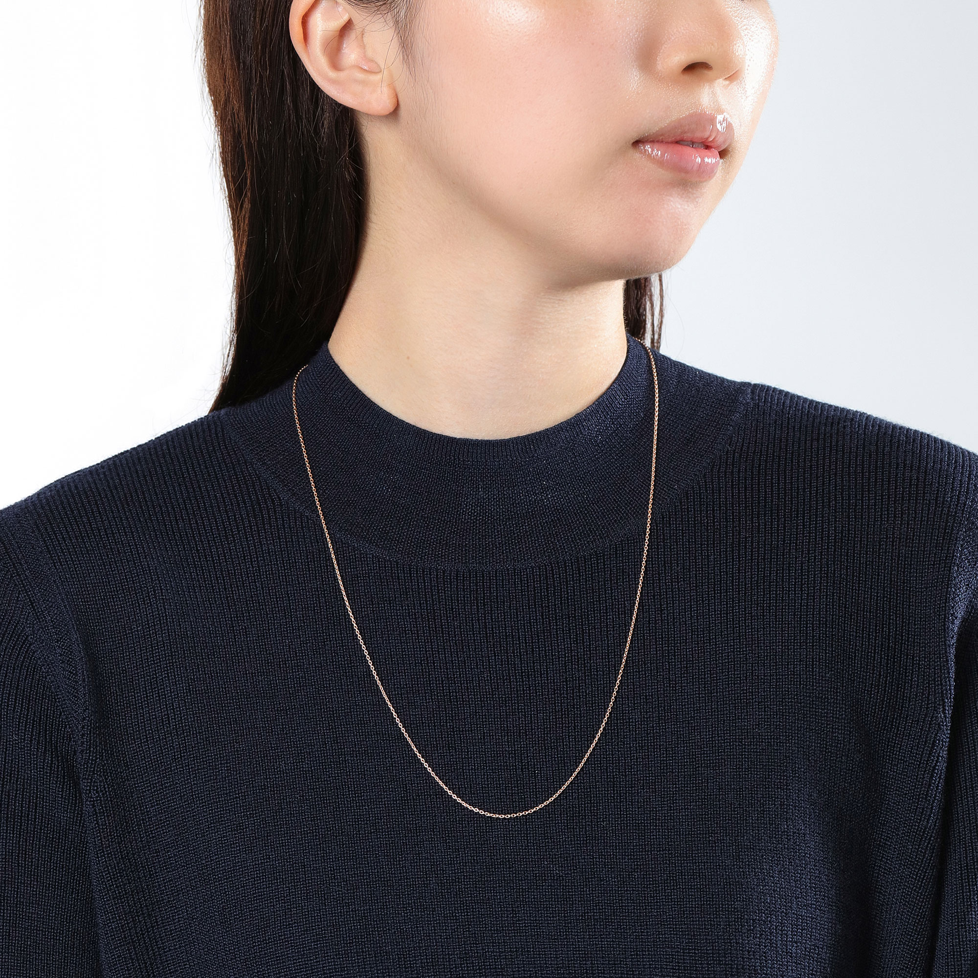 60cmは大きめのペンダントトップを下げてもゆったりとしたラグジュアリーさを感じさせる長さで、厚手の衣類の上でもしっかりと長さを表現できます。