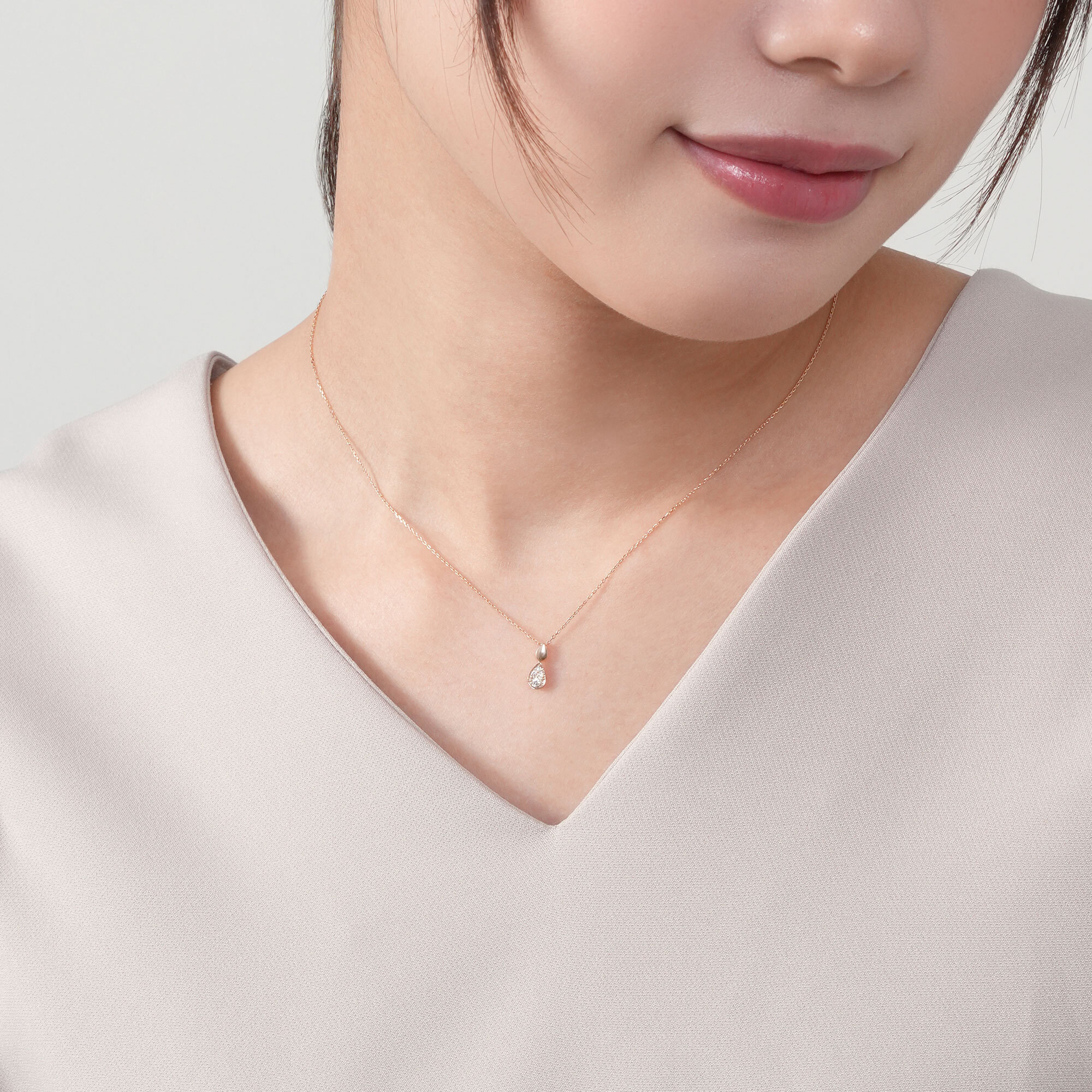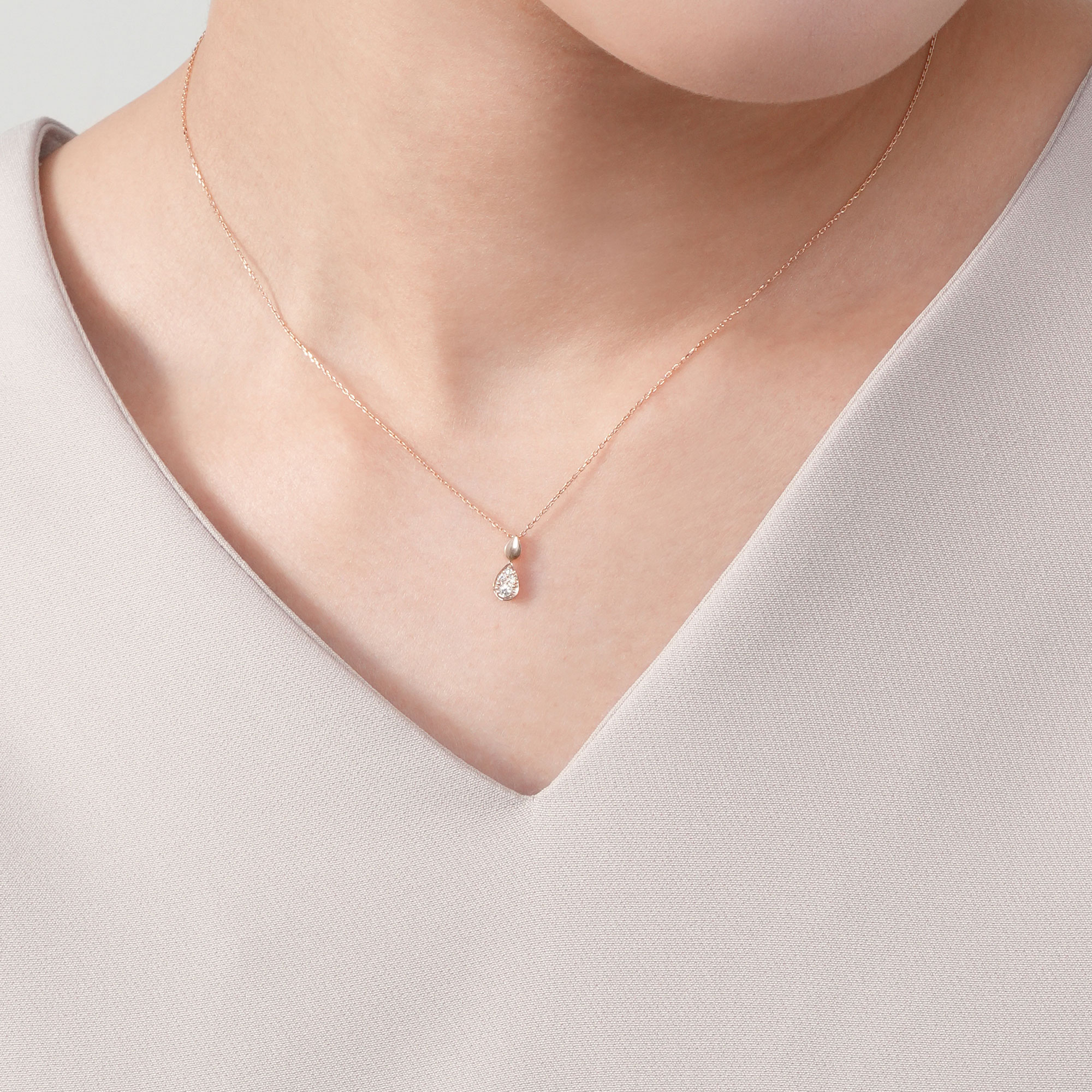 花びらのようにふんわりとしたフォルム、鏡面に仕上げられたピンクゴールドの輝きが胸元に華やかさをプラス。