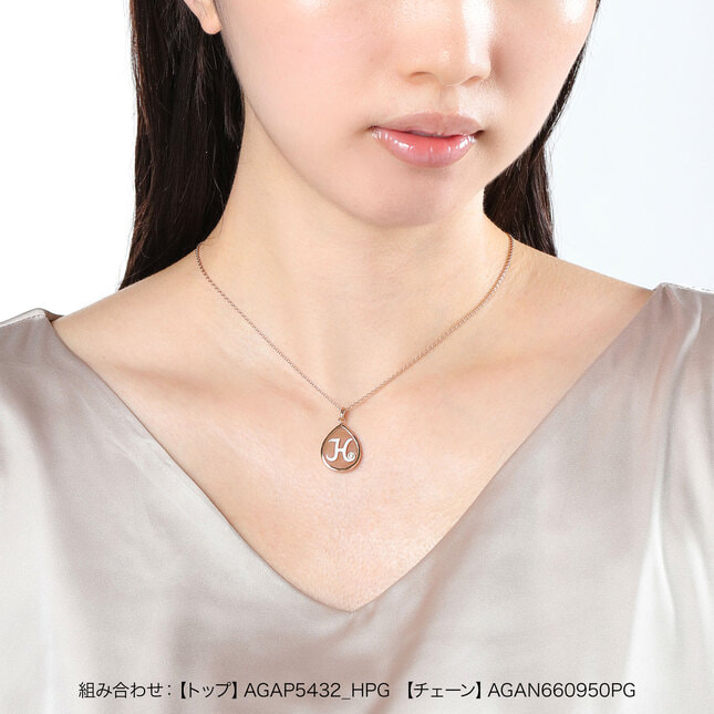 肖像画などオーバル型のカメオデザインが多い中、モダンでオリジナリティを追求できるパーソナライズドイニシャルカメオコレクションは、ドロップ型のデザインもポイントです。バランス良く、胸元を個性的かつ印象的に演出します。