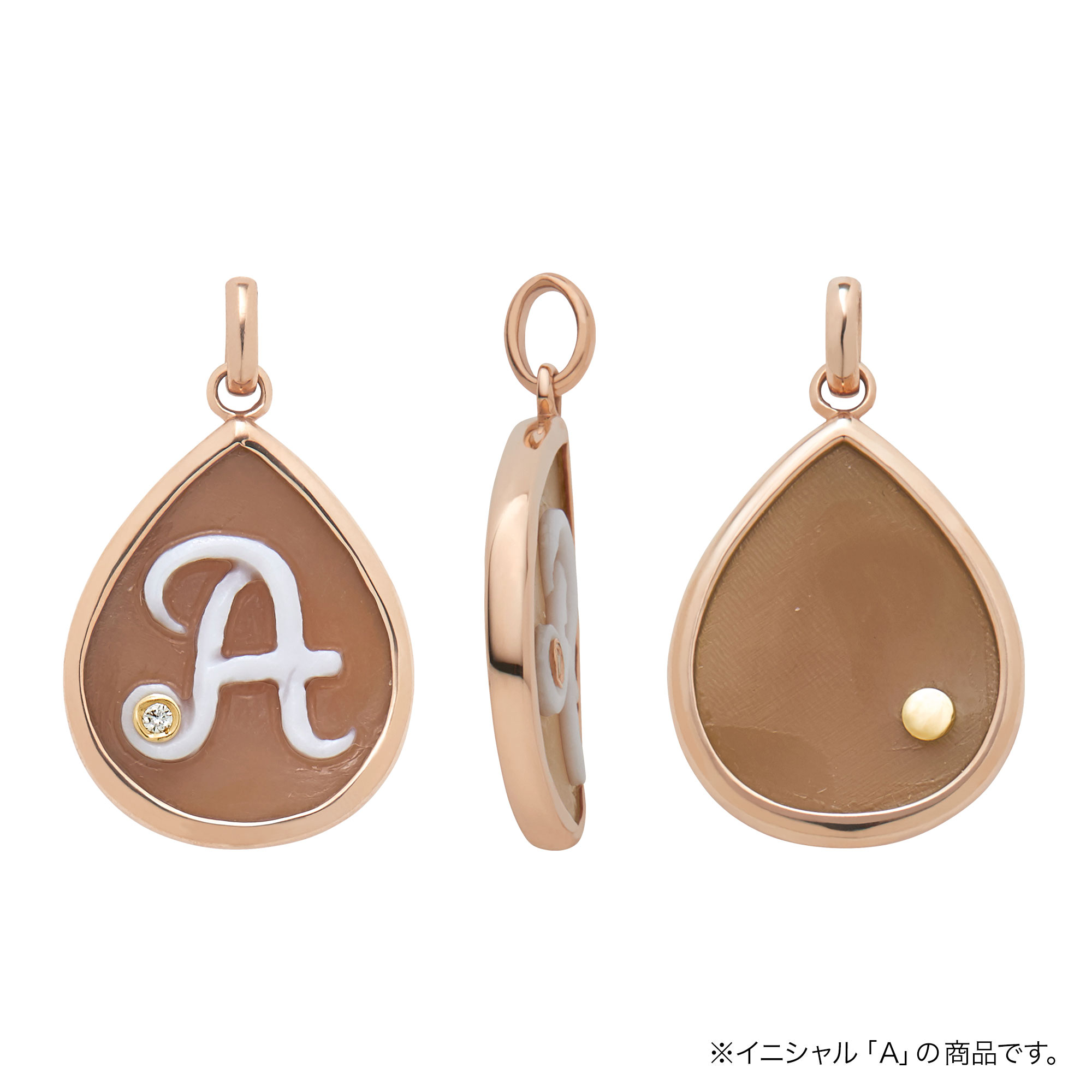 肖像画などオーバル型のカメオデザインが多い中、モダンでオリジナリティを追求できるパーソナライズドイニシャルカメオコレクションは、ドロップ型のデザインもポイントです。バランス良く、胸元を個性的かつ印象的に演出します。