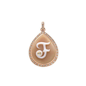 イニシャルが彫刻されたシェルカメオのペンダントチャーム。