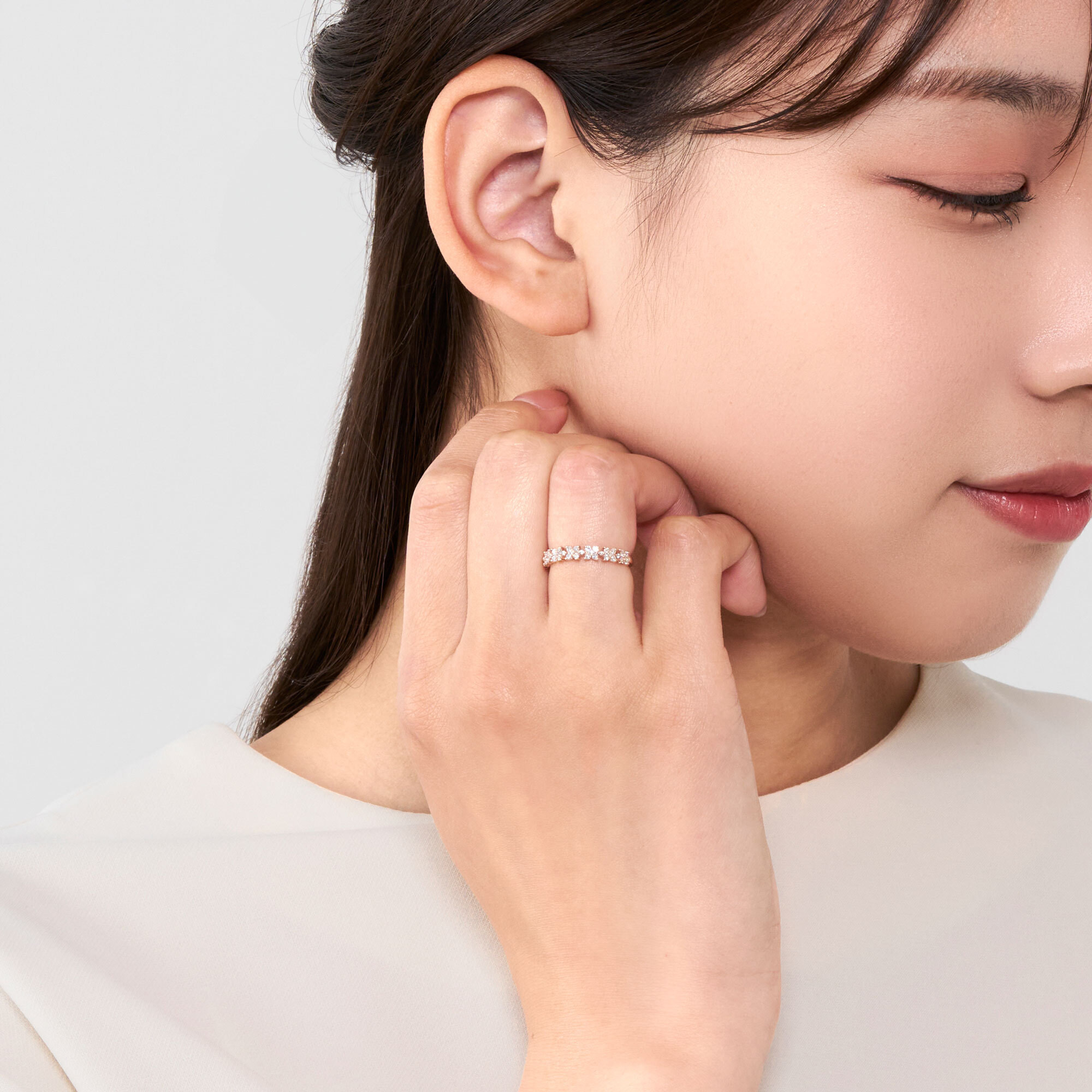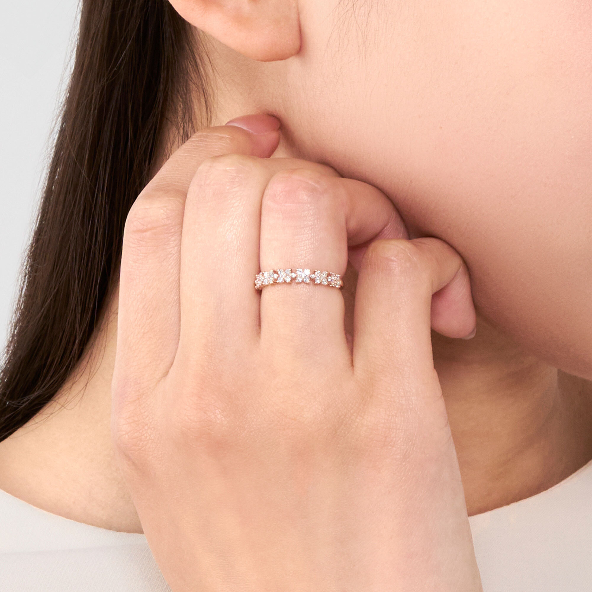 ダイヤモンドの粒感を活かして、瑞々しくつややかな花びらを連ねたエタニティタイプのデザイン。