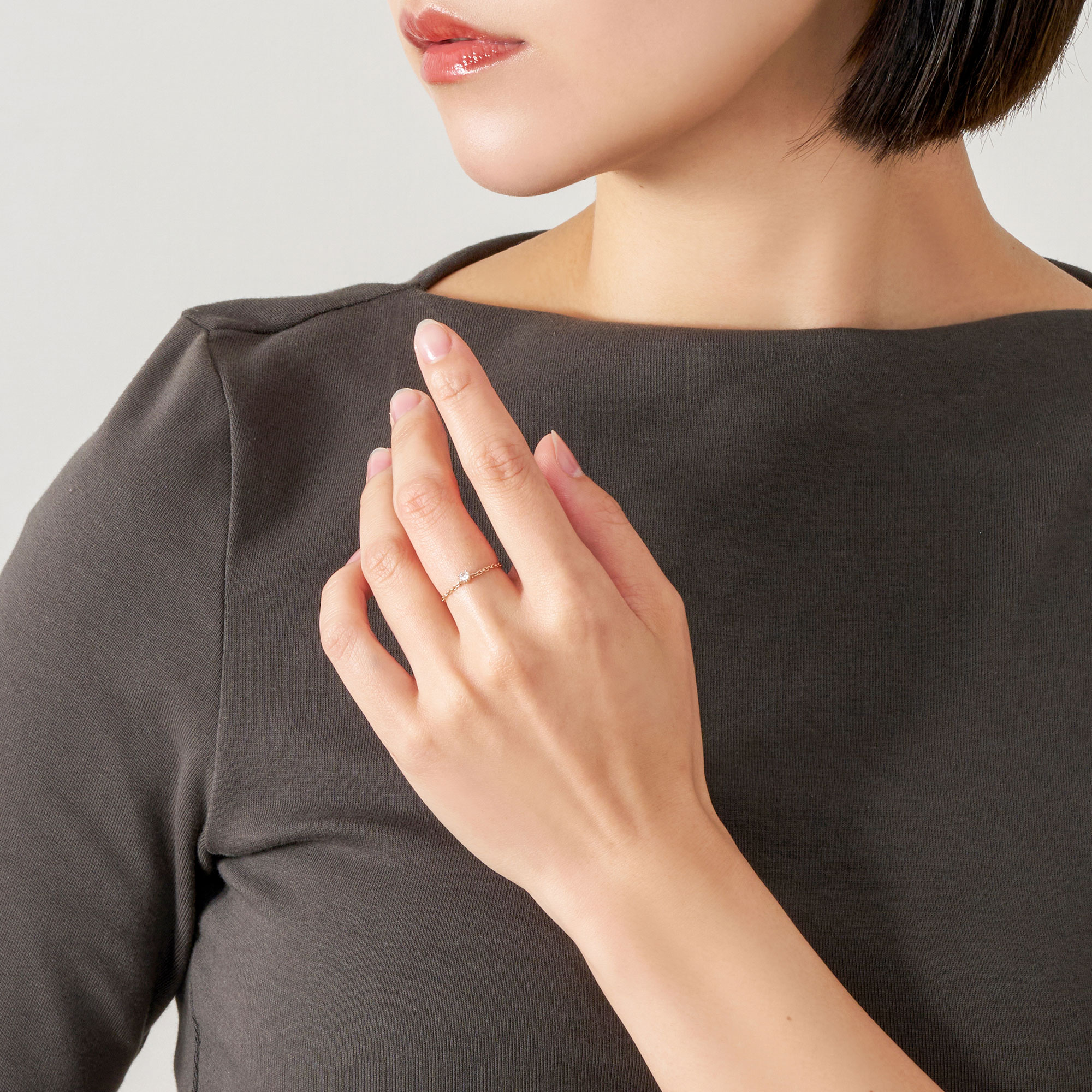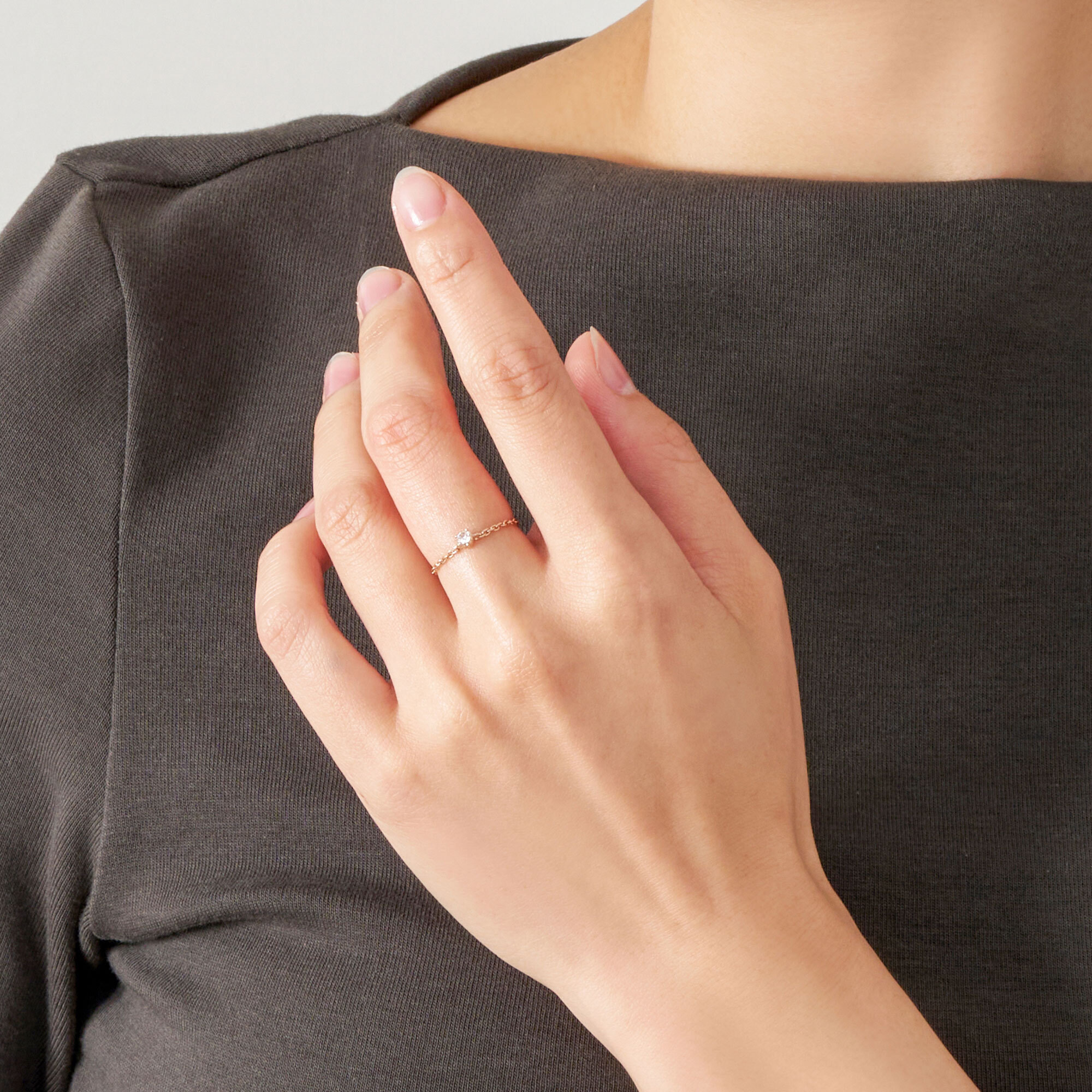 一石のダイヤモンドの輝きが際立つ"キャトル"シリーズのデザインをチェーンリングにアレンジ。