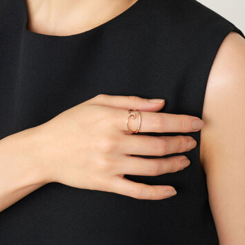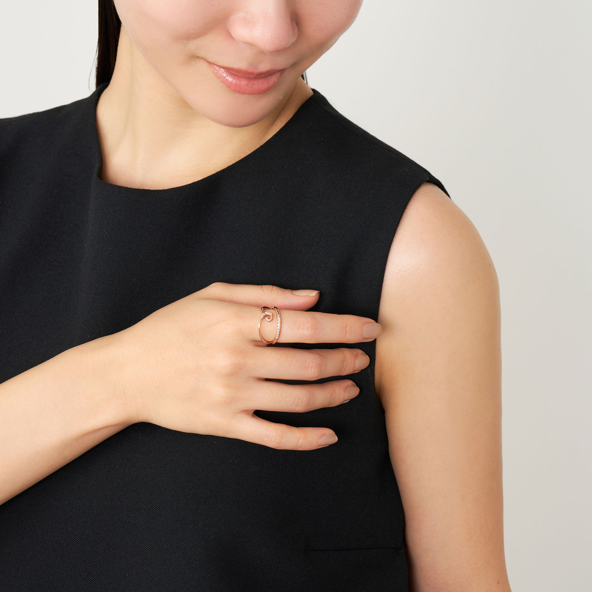 音色豊かな楽器のように、ダイヤモンドを纏った弦を指に巻き付けたようなフォルムが特徴のイニシャルリング。