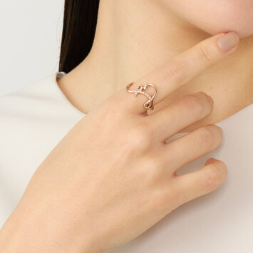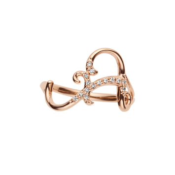音色豊かな楽器のように、ダイヤモンドを纏った弦を指に巻き付けたようなフォルムが特徴のイニシャルリング。