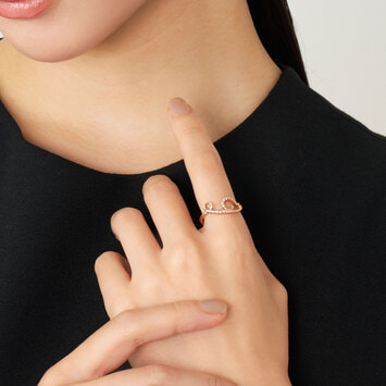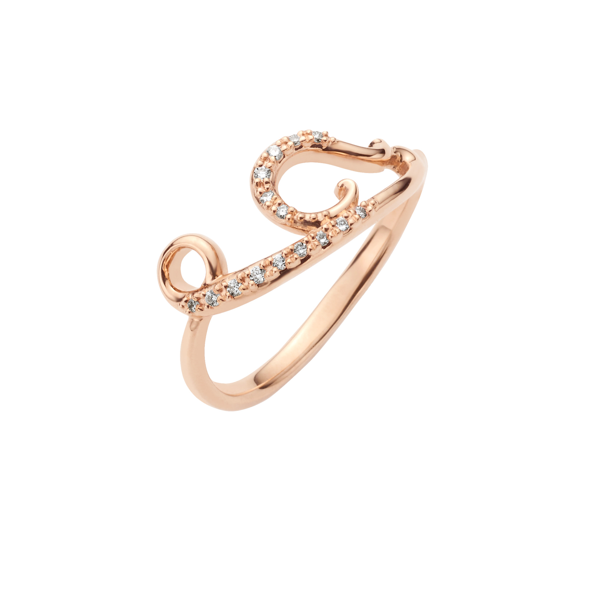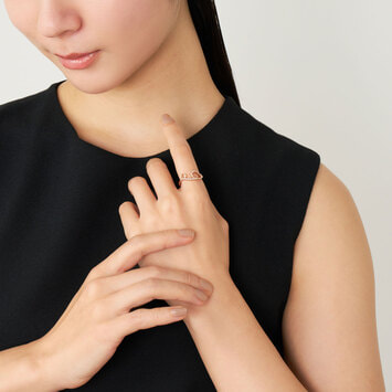 音色豊かな楽器のように、ダイヤモンドを纏った弦を指に巻き付けたようなフォルムが特徴のイニシャルリング。