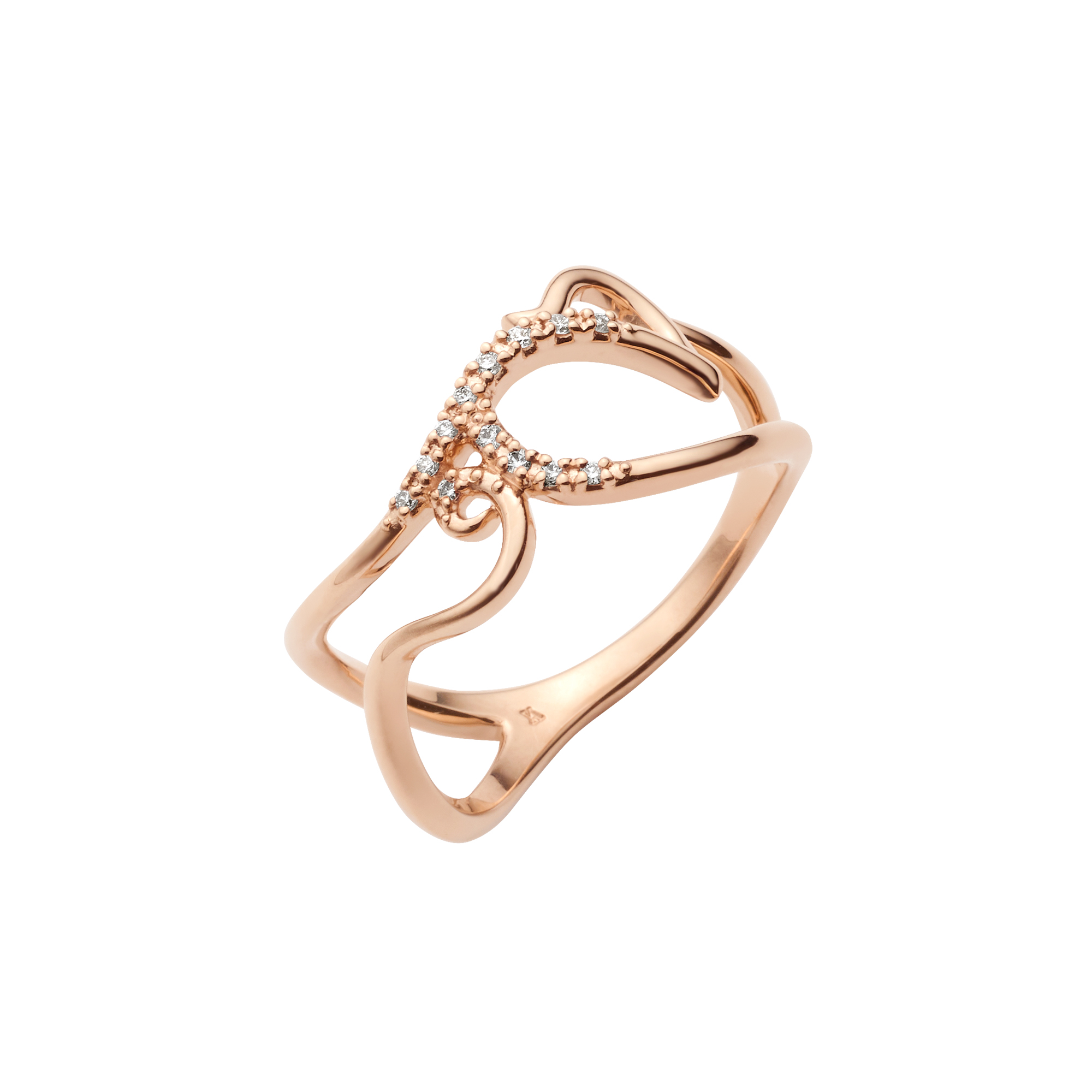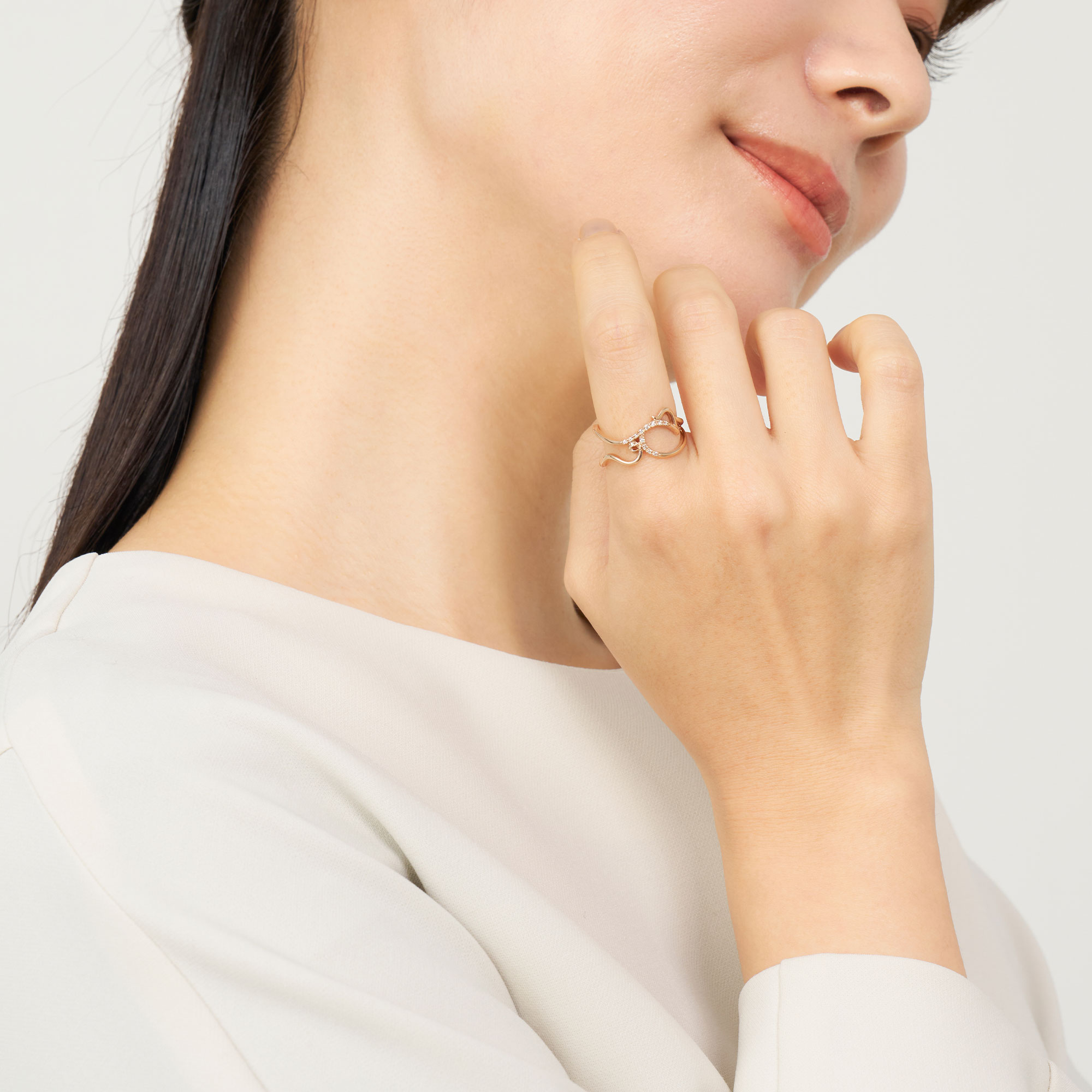 音色豊かな楽器のように、ダイヤモンドを纏った弦を指に巻き付けたようなフォルムが特徴のイニシャルリング。