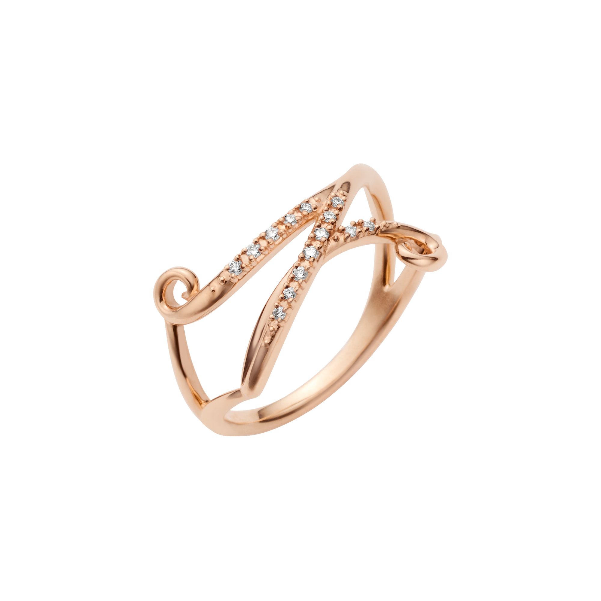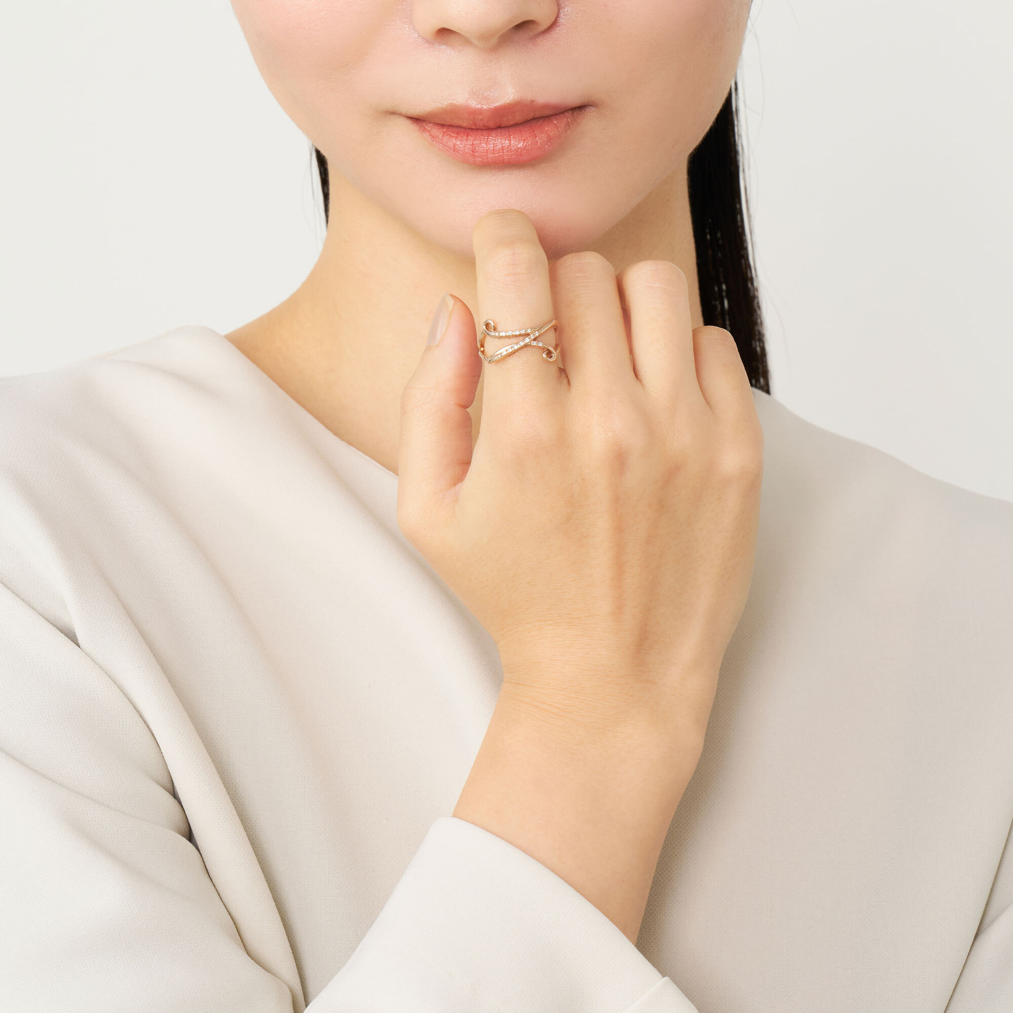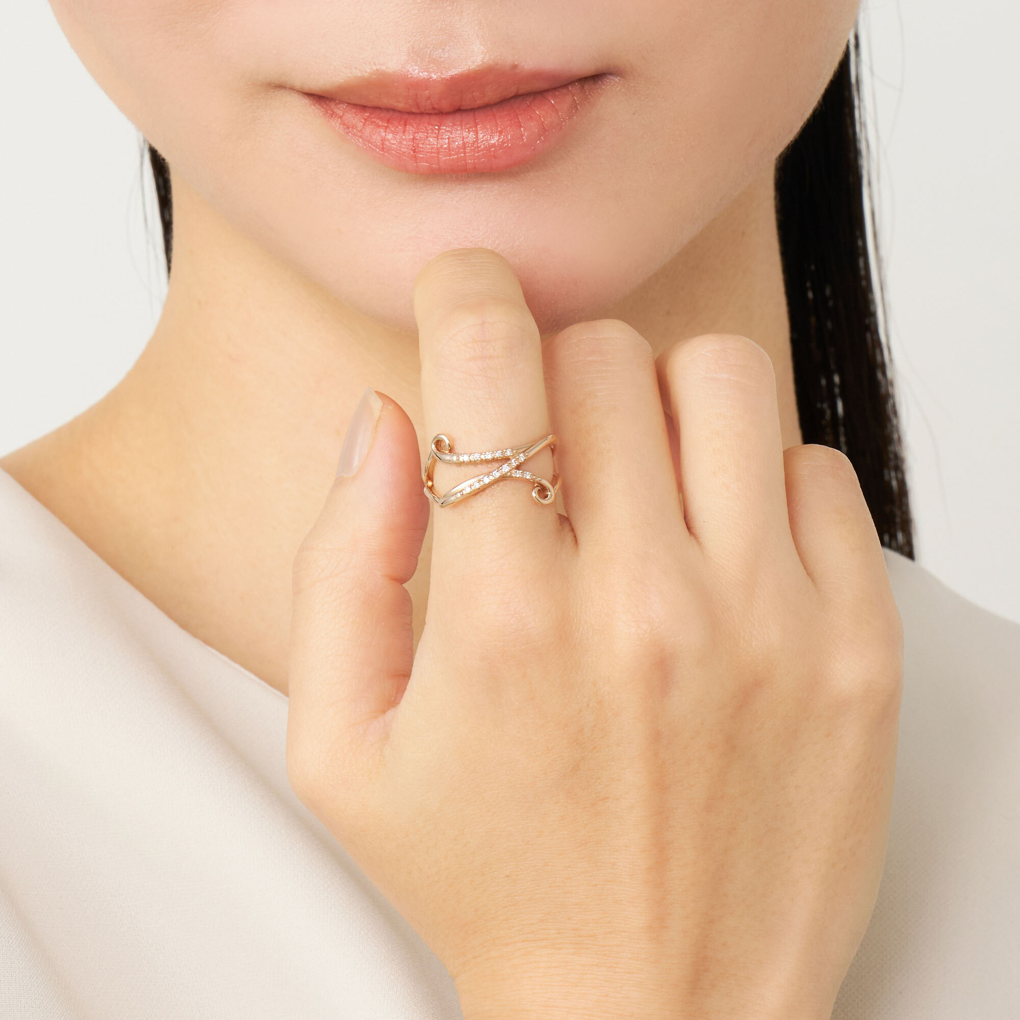 音色豊かな楽器のように、ダイヤモンドを纏った弦を指に巻き付けたようなフォルムが特徴のイニシャルリング。