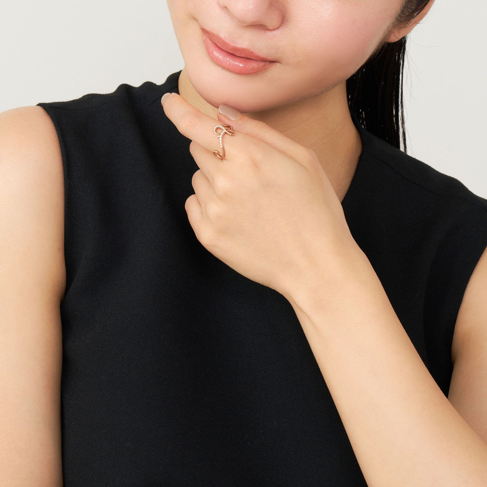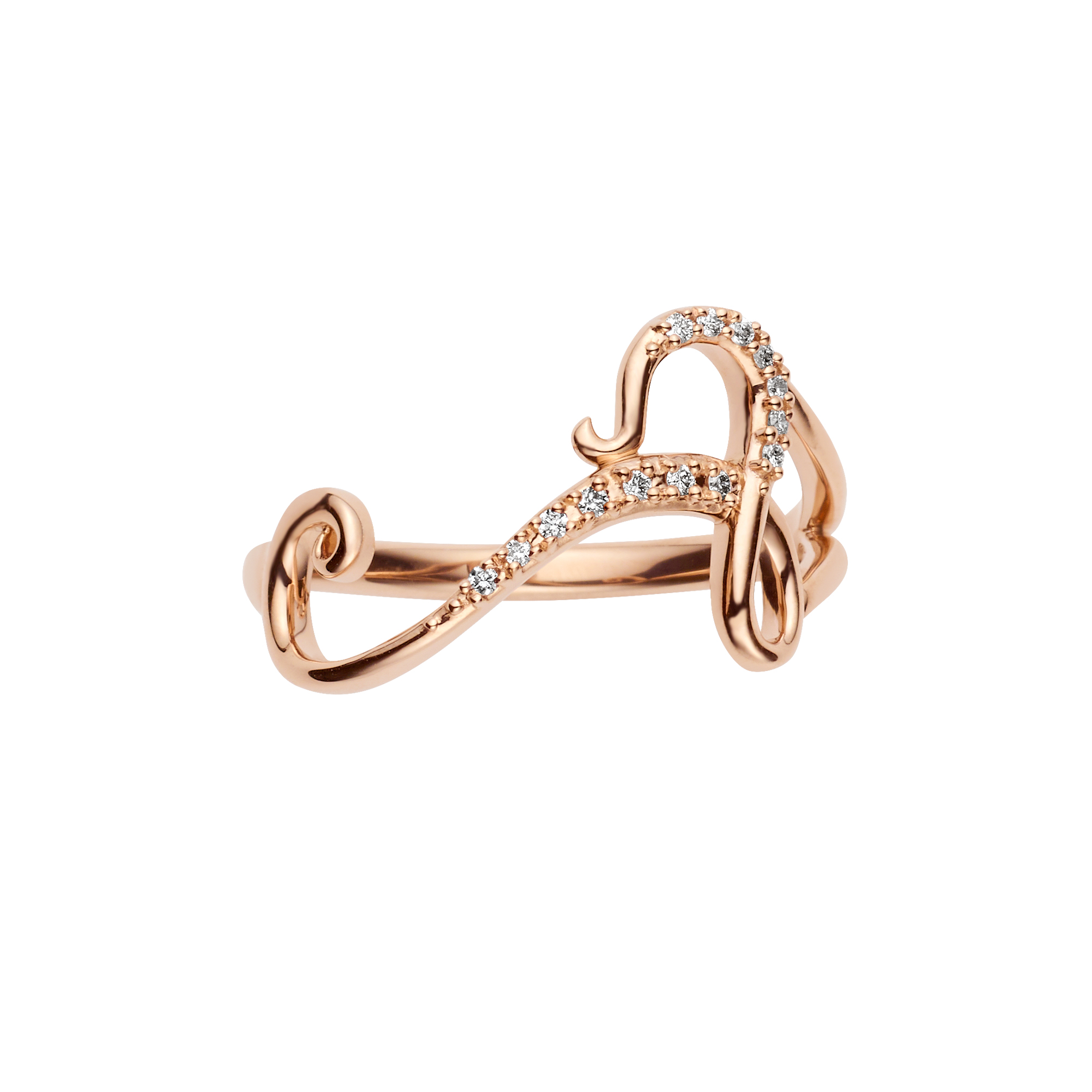 音色豊かな楽器のように、ダイヤモンドを纏った弦を指に巻き付けたようなフォルムが特徴のイニシャルリング。