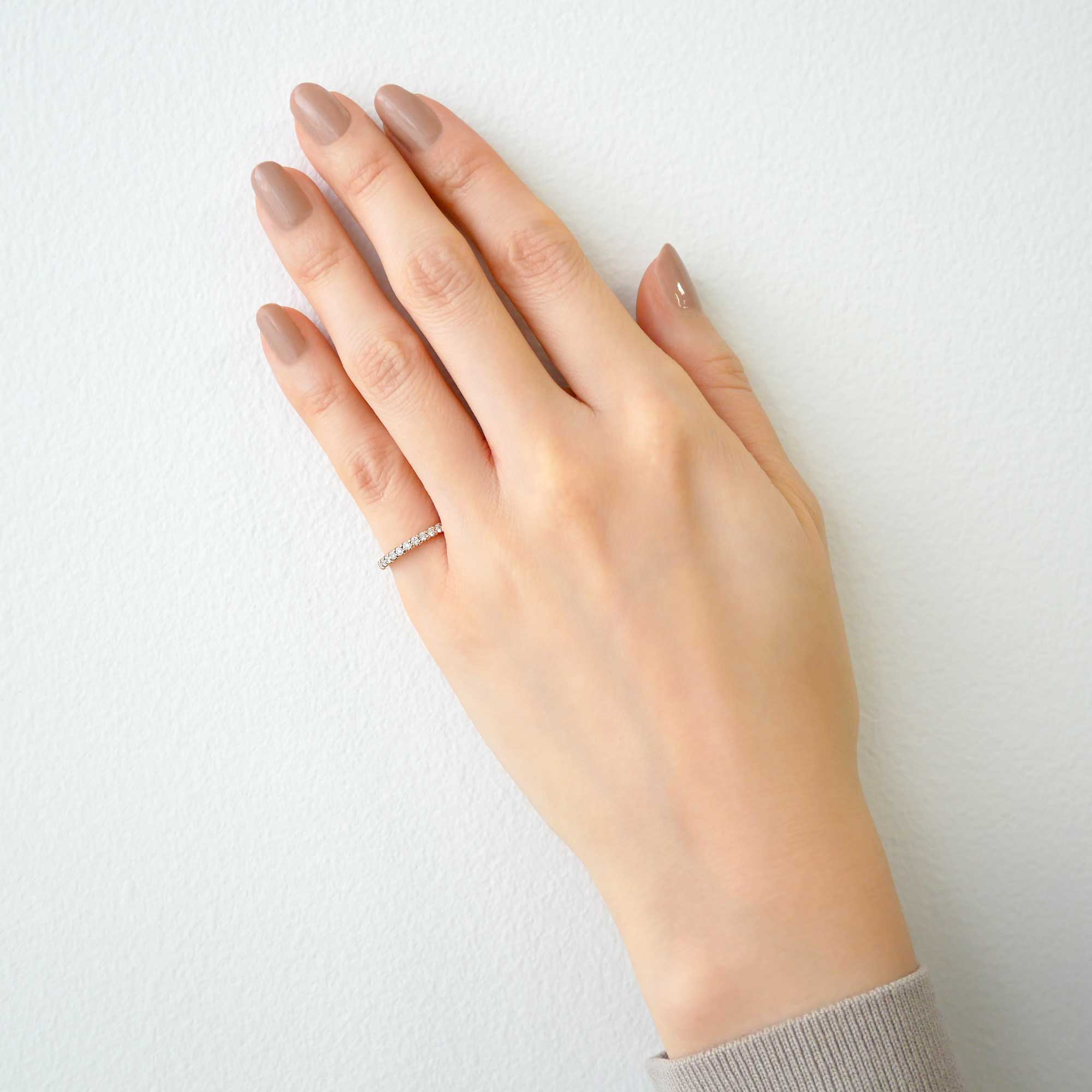 ダイヤモンドの輝きと地金の質感のコントラストが、手元に華やぎを添えてくれます。